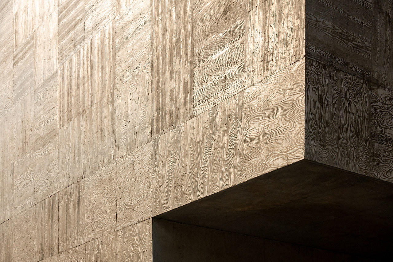송은은 30M가 넘는 대로를 굳건하게 막아선 채 내부의 모습을 일절 내비치지 않았다. 건물의 상부 중앙에 있는 저금통의 동전 구멍 같기도 한 창문이 하늘빛을 반사하고, 빛이 더해지자 건물 외피의 나뭇결 패턴이 드러났을 뿐이다. 송은이라는 이름처럼 숨겨진 소나무를 담고 싶어 콘크리트를 굳힐 때 질감을 입힐 수 있는 목재 거푸집을 사용했고, 그에 따라 피부에 새겨진 문신처럼 건물에 새겨진 나뭇결은 빛을 각기 다른 방식으로 반사한다.