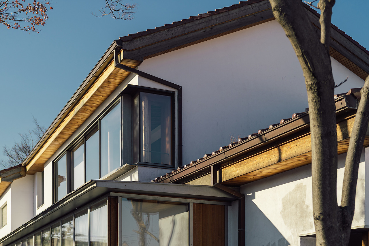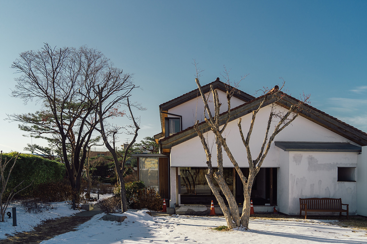 계단을 오르기 전에는 온전한 외관을 보기 어려웠지만, 계단을 오르자 흰색 외벽과 붉은 기왓장들이 눈에 들어온다. 한옥에 비해 턱없이 짧은 처마와 구부러지지 않는 직선의 지붕 구조가 전통적인 한옥과 대비된다. 한옥은 기능에 따라 여러 실을 넓게 땅에 펼쳐 외부 공간을 감싸는 형태로 중정을 만들고 내부 공간에 들어가기 전까지 마당과 마루를 거치게 되는 위계가 있는 반면, 적산가옥은 마치 여러 겹의 옷을 입은 것처럼 하나로 뭉쳐 실들을 복도로 연결하는 형태로 지어졌다. 일부는 1층으로, 또 일부는 2층으로 지어져 여러 지붕이 겹쳐진 모습을 확인할 수 있다.