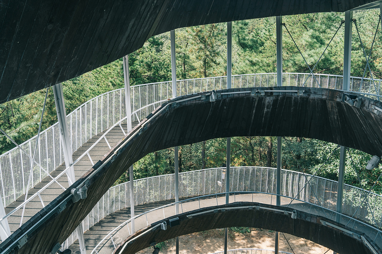 네덜란드에서 워낙 독특한 형태와 색상의 건축물들을 많이 선보이는 건축가그룹인 MVRDV는 데이터를 이용해 풍경을 만들어내는 데이터스케이프 방식을 안양예술공원 뒷산에 적용했다. 삼성산의 등고선을 그대로 연장하여 나선형 전망대를 만들어 올렸다. 마치 회오리 감자처럼 수직으로 들어 올려진 산책길 위에서 보행자는 천천히 램프를 따라 오르며 주변을 빼곡히 감싼 소나무의 밑동부터 줄기와 이파리들을 지나 점점 하늘에 가까워진다. 마침내 전망대를 몇 바퀴 돌아 정상에 이르렀을 때 저 멀리 관악산의 모습부터 안양예술공원의 전체적인 모습이 파노라마로 펼쳐진다. 안양전망대는 정해진 높이 위로 올라가면 보이는 결괏값뿐 아니라 과정을 그대로 선물하듯 보여준다.