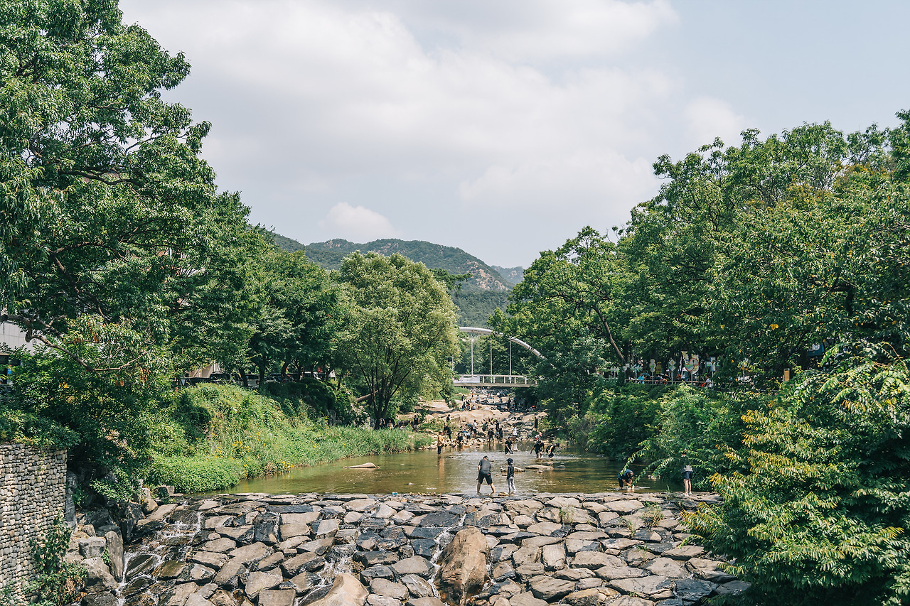 왜 나는 당연하게 안양예술공원이 경계가 있는 곳이라 여겼을까. 내비게이션에서는 도착했다는 안내가 나오는데, 난 여전히 도로 위에 있었다. 알고 보니 안양예술공원은 경계가 없다. 관악산과 삼성산 골짜기서 흘러내려오는 삼성천을 따라 조성되어 있는 물길, 보도, 그리고 많은 북적이는 상가들이 모두 안양예술공원을 이루는 주체들이었다.