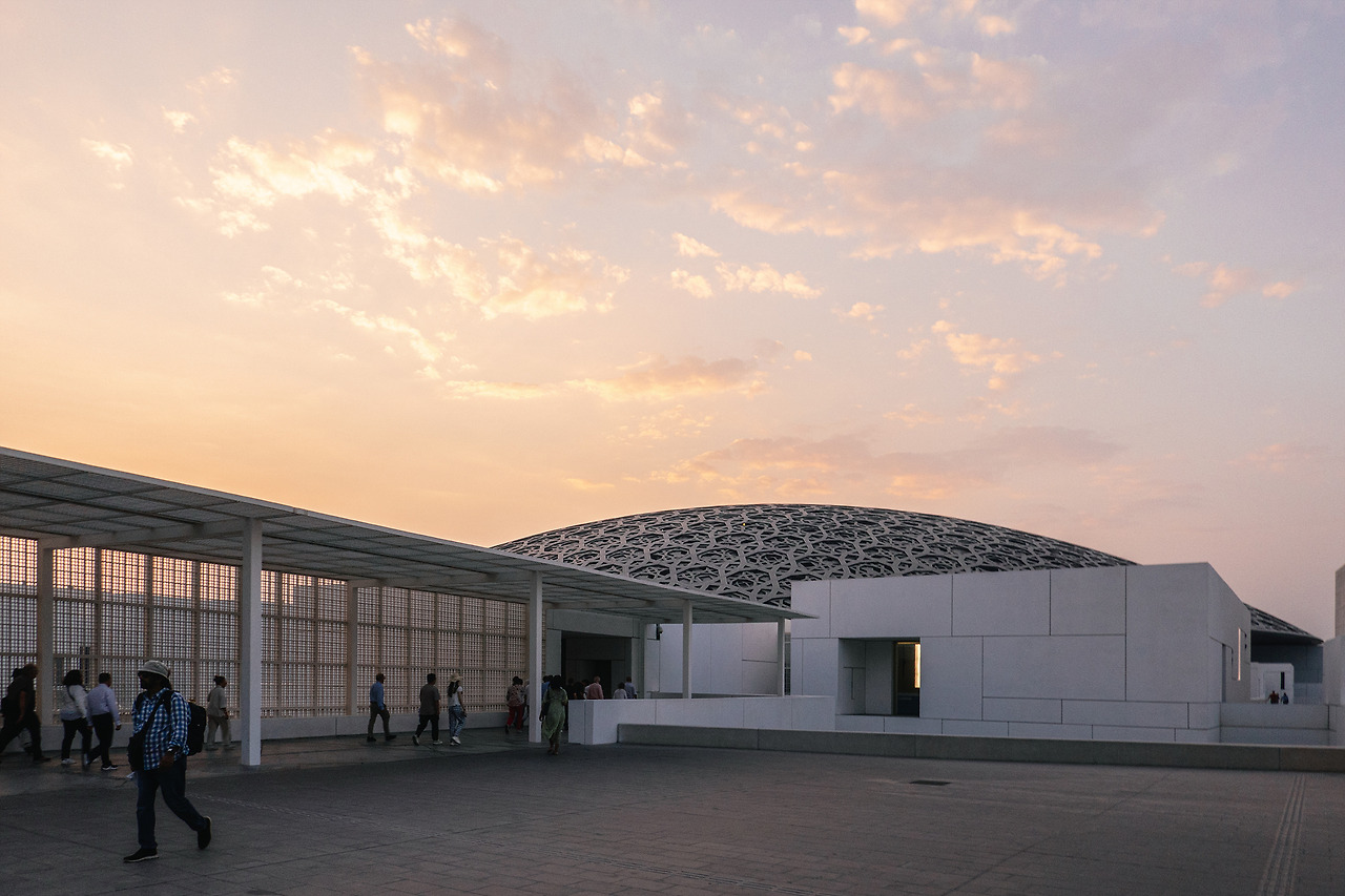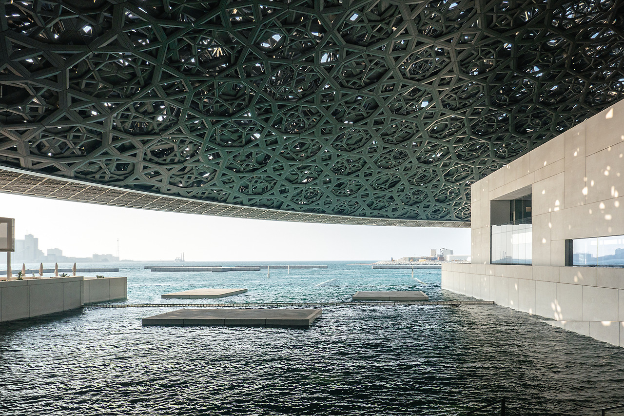 솔직히 말하면, 장 누벨의 열렬한 팬은 아니었다. 루브르 아부다비의 사진을 처음 보았을 때도 돈만 많이 들인 거북이 등껍질 같은 저 돔이 대체 뭐가 그리 대단한가 싶었다. (찾아보니 공사비만 1조 원이 들었다.) 매거진 속 루브르의 이미지들은 언제나 공간의 일부만 보여줬다. 돔의 복잡한 패턴, 빛의 그림자, 흰 건물과 푸른 물결. 이미지들은 그 자체로 멋졌지만 전체를 상상하긴 어려웠고, 궁금증은 가시지 않았다. 다만 아부다비에 가게 된다면 꼭 가봐야지 생각했다.