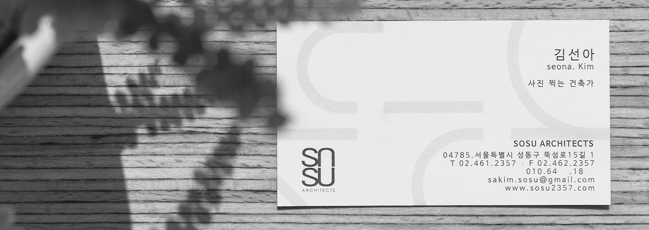 작은 회사이기도 하고, 직급으로 사람들을 나누고 싶지 않은 소장님의 생각 덕분에 명함 아래 타이틀을 하나 붙일 수 있었다. 모두가 건축가이지만, 그 앞에 본인을 나타낼 수 있는 수식어를 하나씩 붙이기로 한 것. 그리하여 나는 사진 찍는 건축가다.
