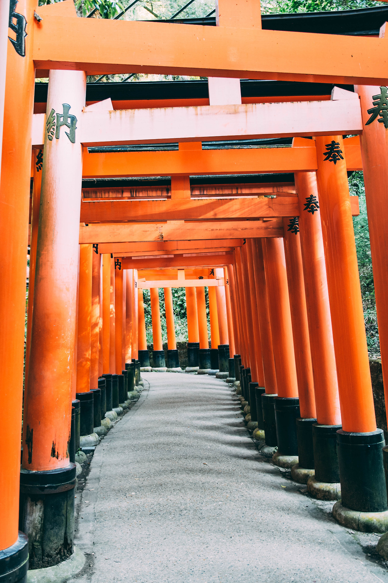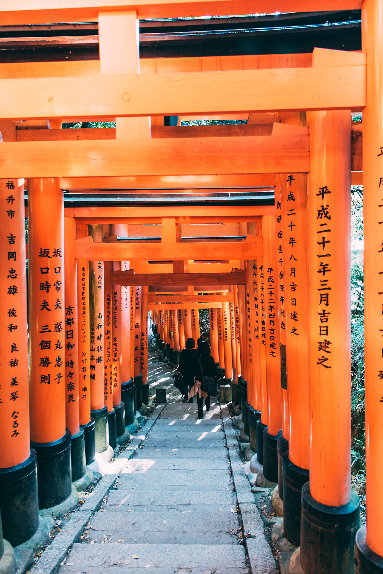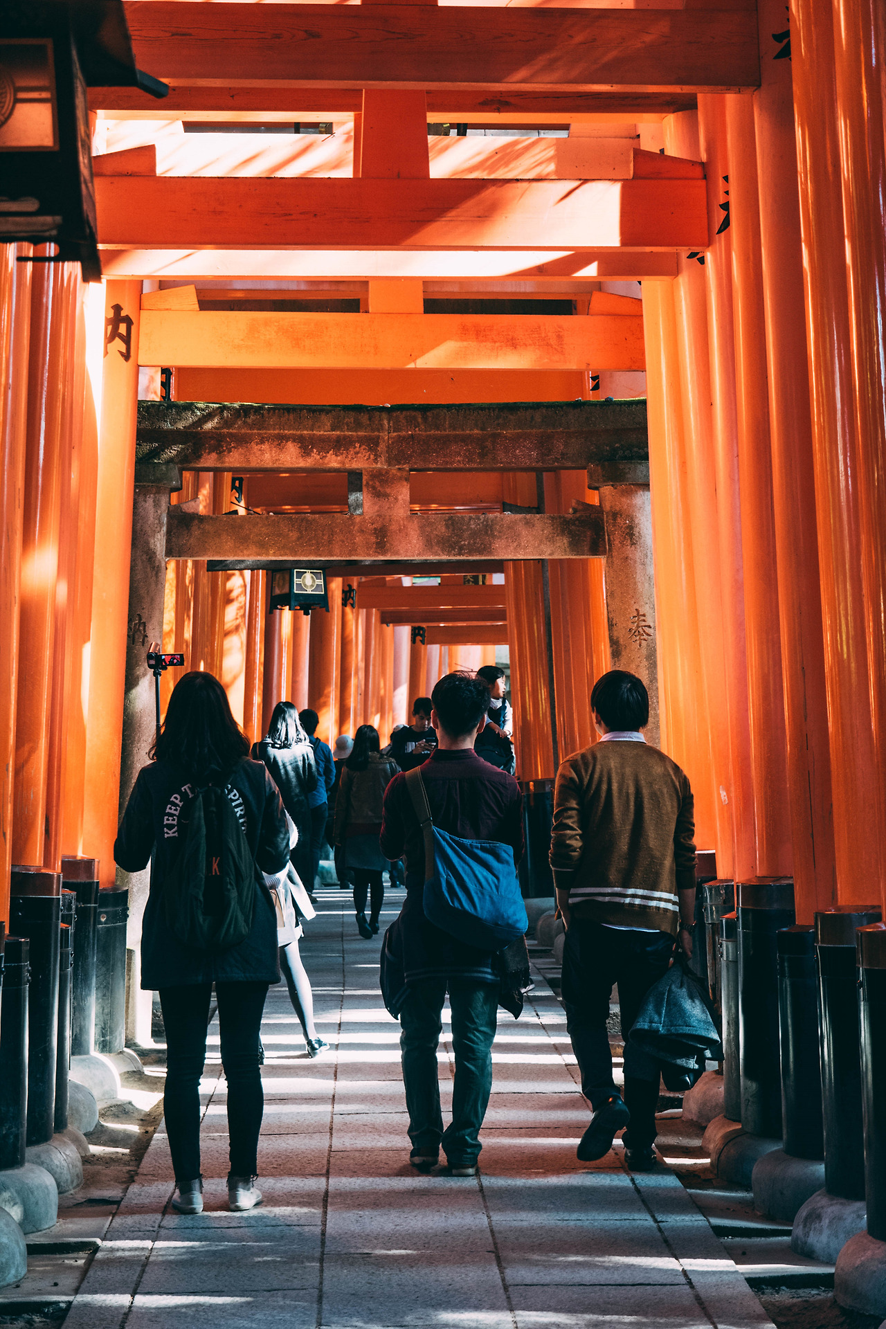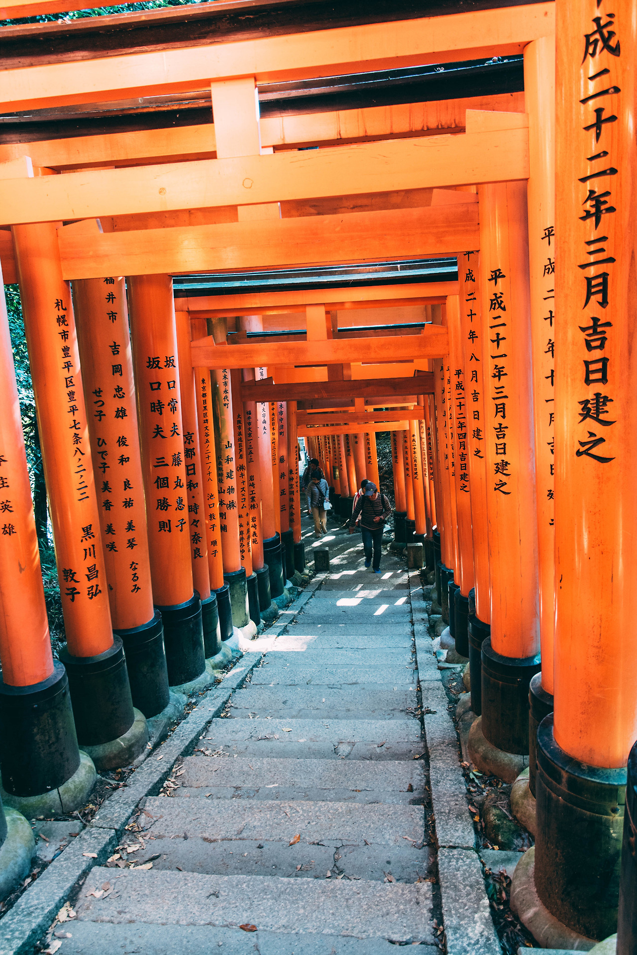 내가 방문했던 때는 어느 가을 날, 햇빛이 강하게 내리쬐는 맑은 날이었다. 붉은 토리이 사이로 들어오는 햇살은 선명한 그림자를 남겼고, 바닥에 새로운 무늬를 새겼다. 사람이 없어질 때까지 걸었다. 비록 정상까지 오르진 않았지만, 원하던 사진을 얻을 수 있었다. 사실 웬만하면 정상까지 한바퀴 둘러보고 오겠지만, 오르는 데에만 2시간이나 걸릴 줄 모르고 시간 분배를 잘못한 탓이다.