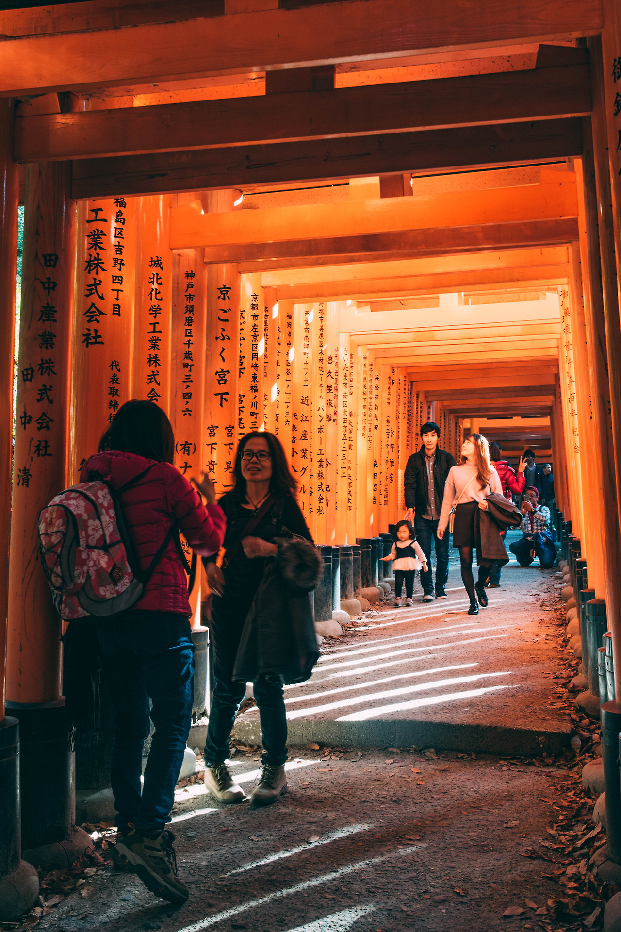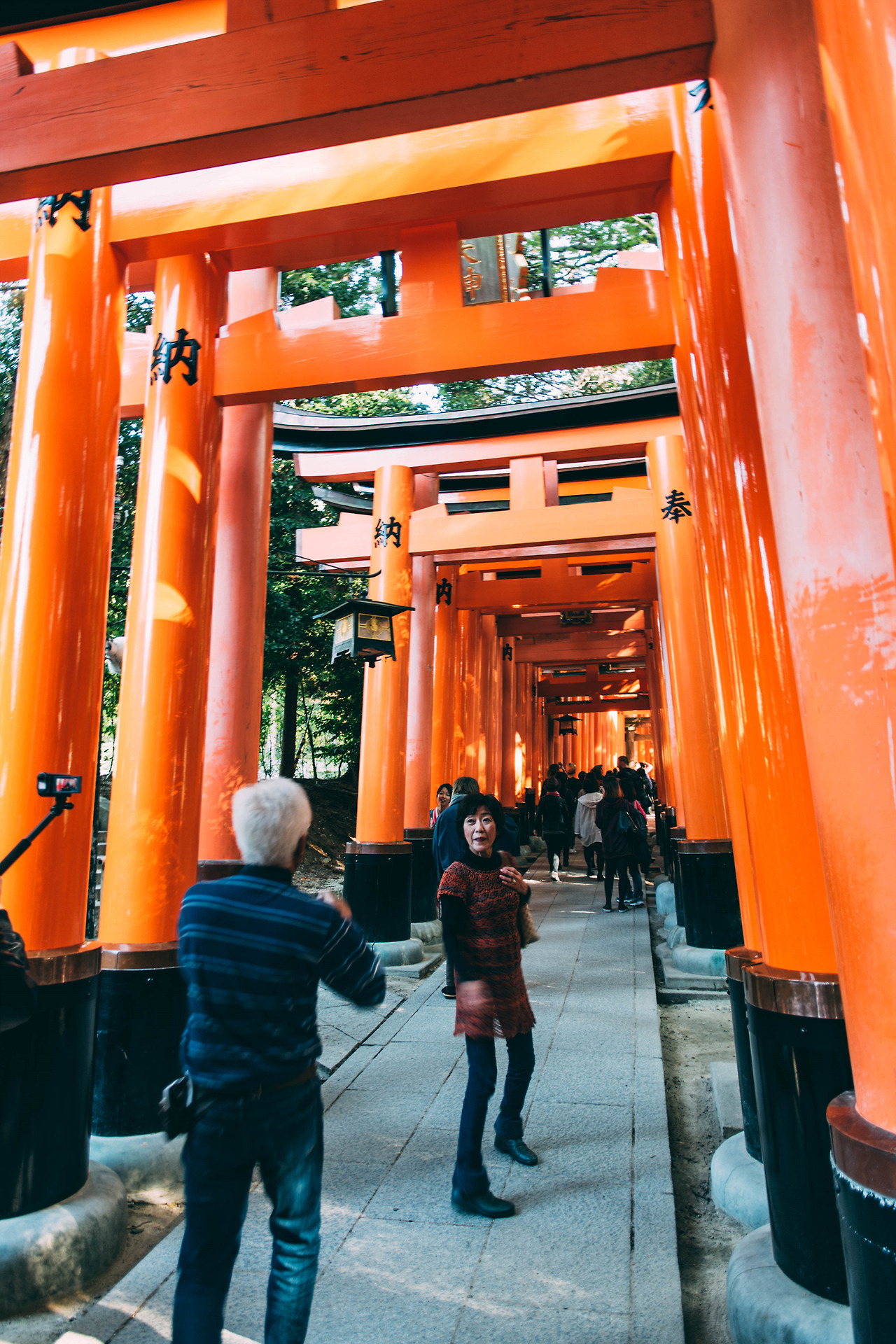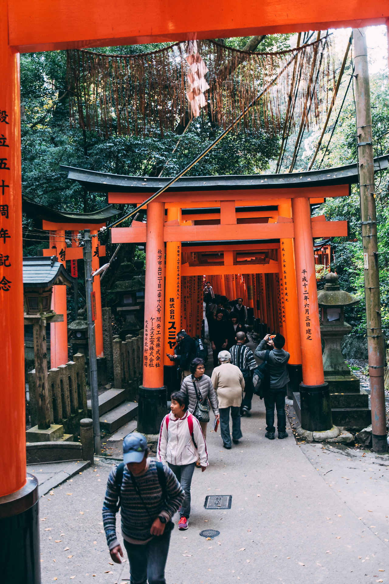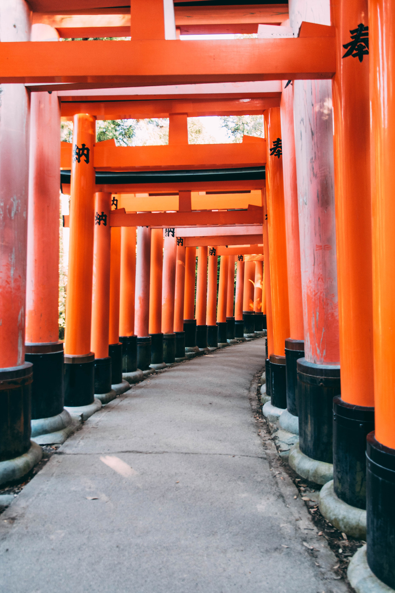 내가 방문했던 때는 어느 가을 날, 햇빛이 강하게 내리쬐는 맑은 날이었다. 붉은 토리이 사이로 들어오는 햇살은 선명한 그림자를 남겼고, 바닥에 새로운 무늬를 새겼다. 사람이 없어질 때까지 걸었다. 비록 정상까지 오르진 않았지만, 원하던 사진을 얻을 수 있었다. 사실 웬만하면 정상까지 한바퀴 둘러보고 오겠지만, 오르는 데에만 2시간이나 걸릴 줄 모르고 시간 분배를 잘못한 탓이다.