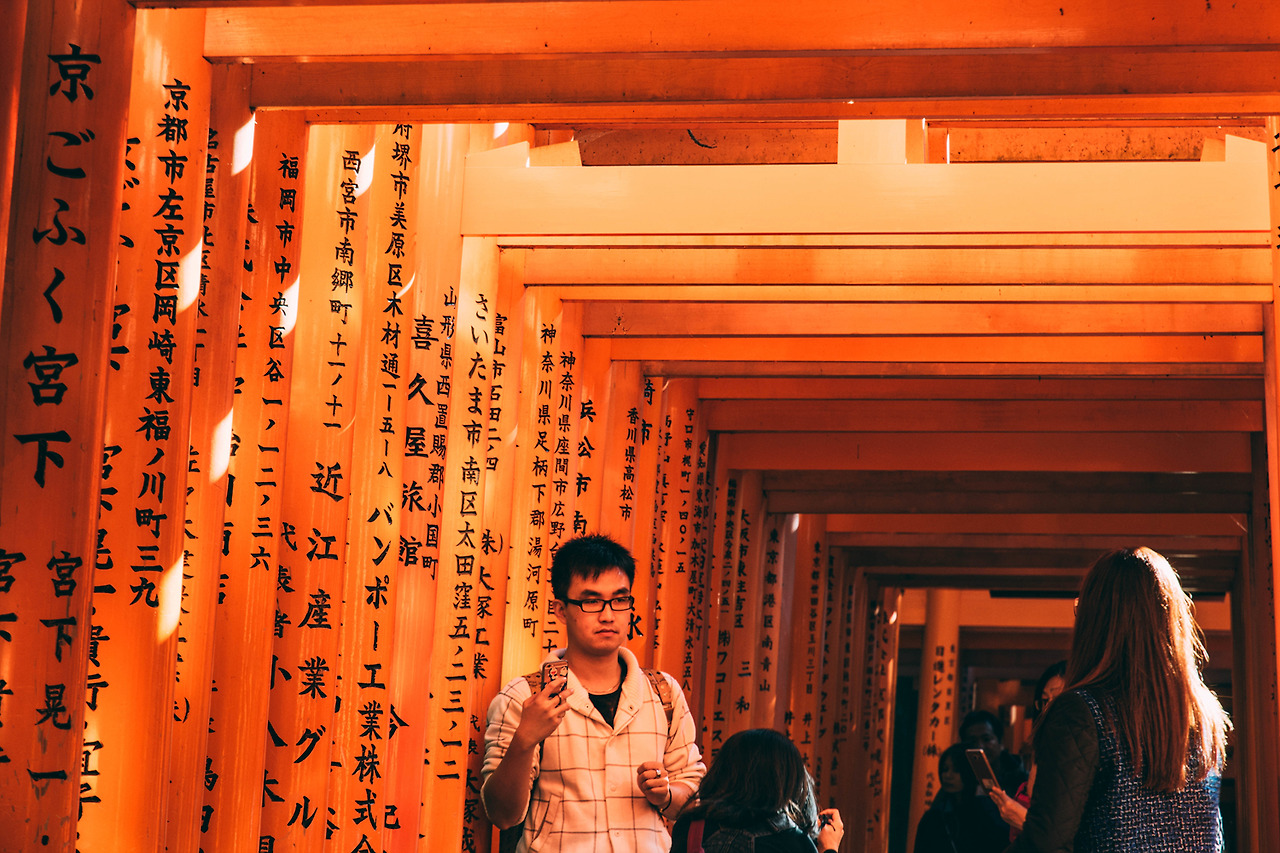 후시미이나리 신사에 발을 딛는 순간, 당신은 이렇게 이번 여행에서 이곳의 사진 찍기는 실패했다고 생각할지도 모르겠다. 왜냐하면 후시미이나리의 토리이만큼이나 사람들이 많다고 느낄 테니까.