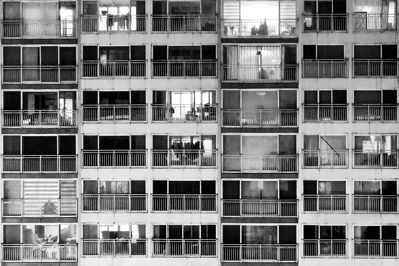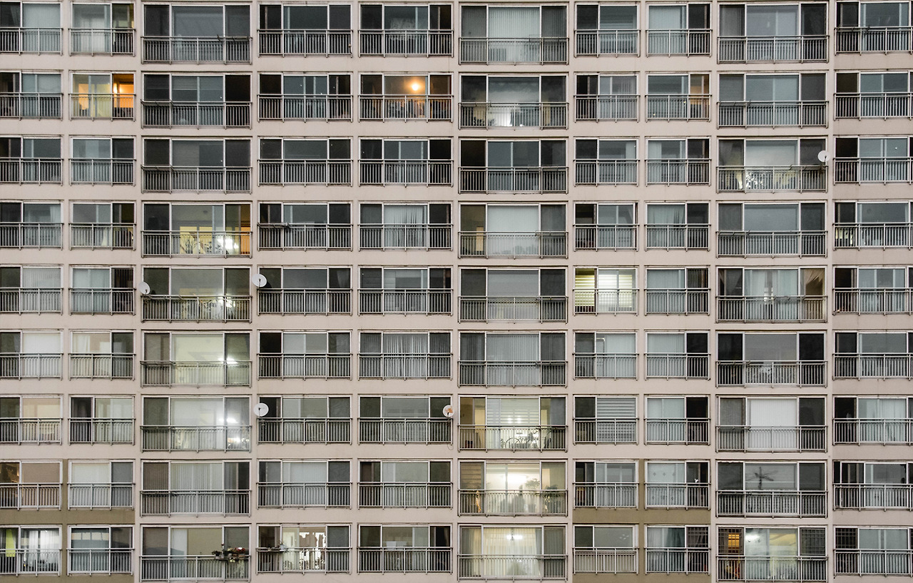 그럼에도 불구하고 아파트는 어느 정도 흥미롭다. 건축가로서는 같은 평면에 넣어진 사람들이 다르게 살아가는 방식을 관찰하는 것이 흥미롭고, 사진을 찍는 사람으로서는 같은 그리드로 깨끗하게 정렬된 창 안으로 다른 삶의 모습을 찍을 수 있다는 면이 흥미롭다.