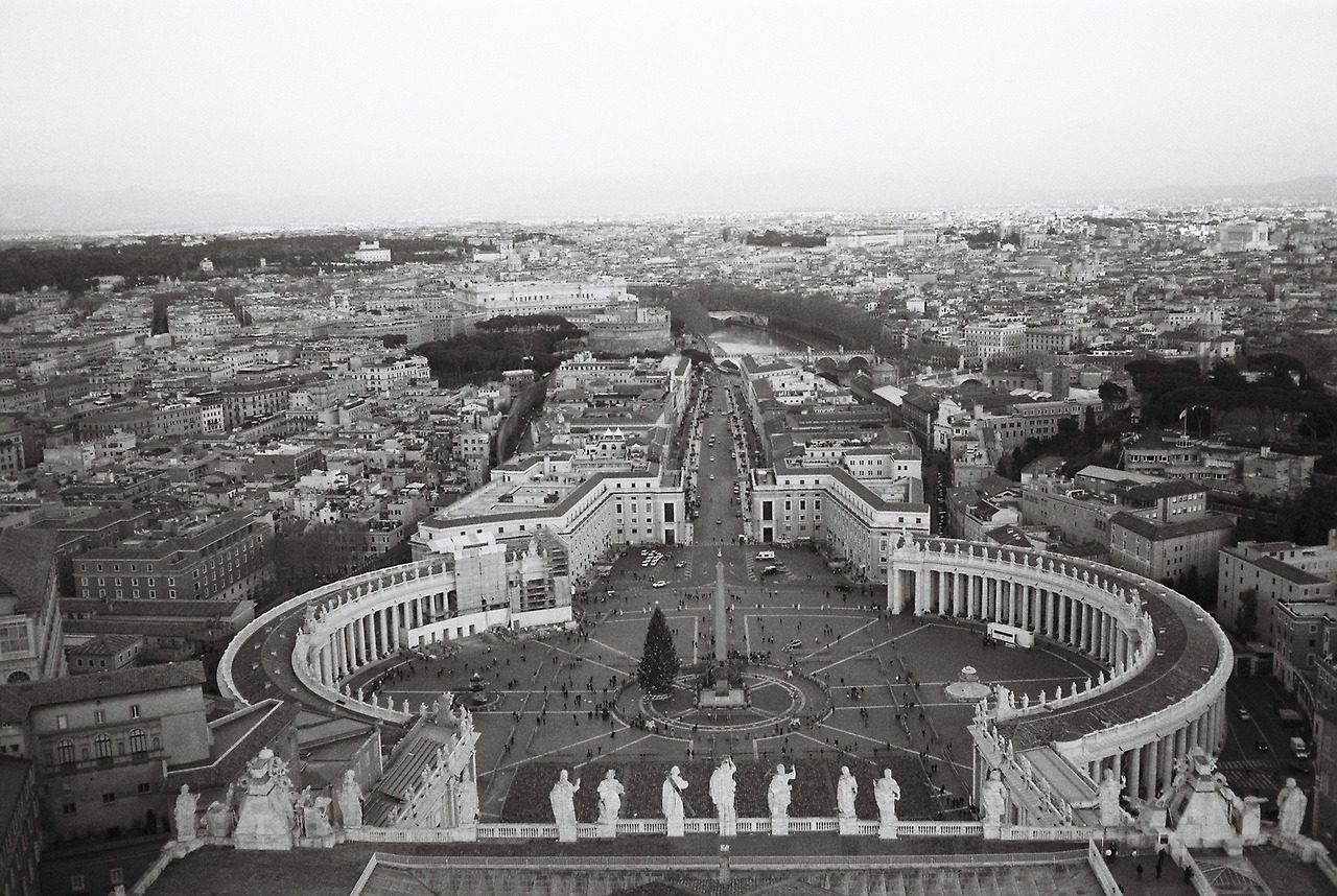 바티칸 광장을 한눈에 바라보기 위해서 성 베드로 성당을 올랐다. 거대한 열주들은 오벨리스크를 중심으로 완벽한 원을 그린다. 광장이 열쇠 모양으로 읽힌다. 로마는 댄 브라운의 소설 <천사와 악마>의 배경지이기도 해서 자꾸 소설 속에 등장했던 상징들이 떠오른다. 성당을 종교로 받아들이지 못하고, 건축과 픽션으로 읽어내는 사람이 나 말고도 많을 런지.