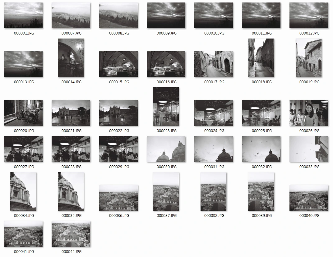 고작 30여 장의 사진이 다시 나에게 돌아온 것인데, 마치 내가 다시 로마로 돌아간 것 같은 기분이 들었다. 신기하게도 그때 내가 맡았던 공기와 걸었던 거리와 차갑고 쌀쌀한 바람이 볼을 스쳤던 그 순간들이 그대로 기억 속에서 빠져나왔다. 친구와 나눴던 대화와 함께 마셨던 와인들이 선명히 떠올랐다. 더 천천히 즐겼으면 좋았을 것을, 더 여유롭게 걷지 못하고, 쉬지 않고 했던 여행의 순간들이 아쉽고 그렇다. 가장 중요한 것은, 내가 다시 로마에 가고 싶은 마음이 들었단 것이다. 색깔 없이 돌아온 37장의 사진 덕분에.