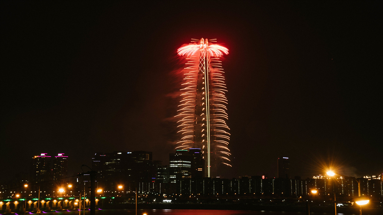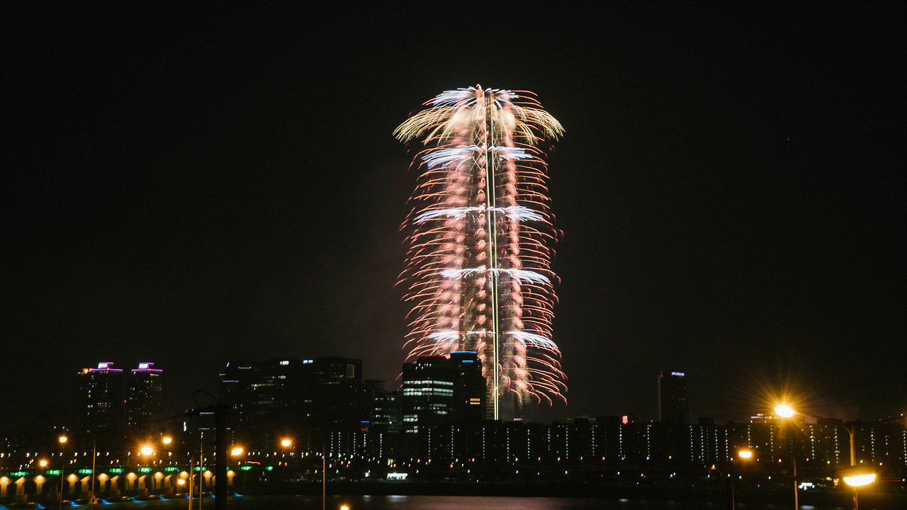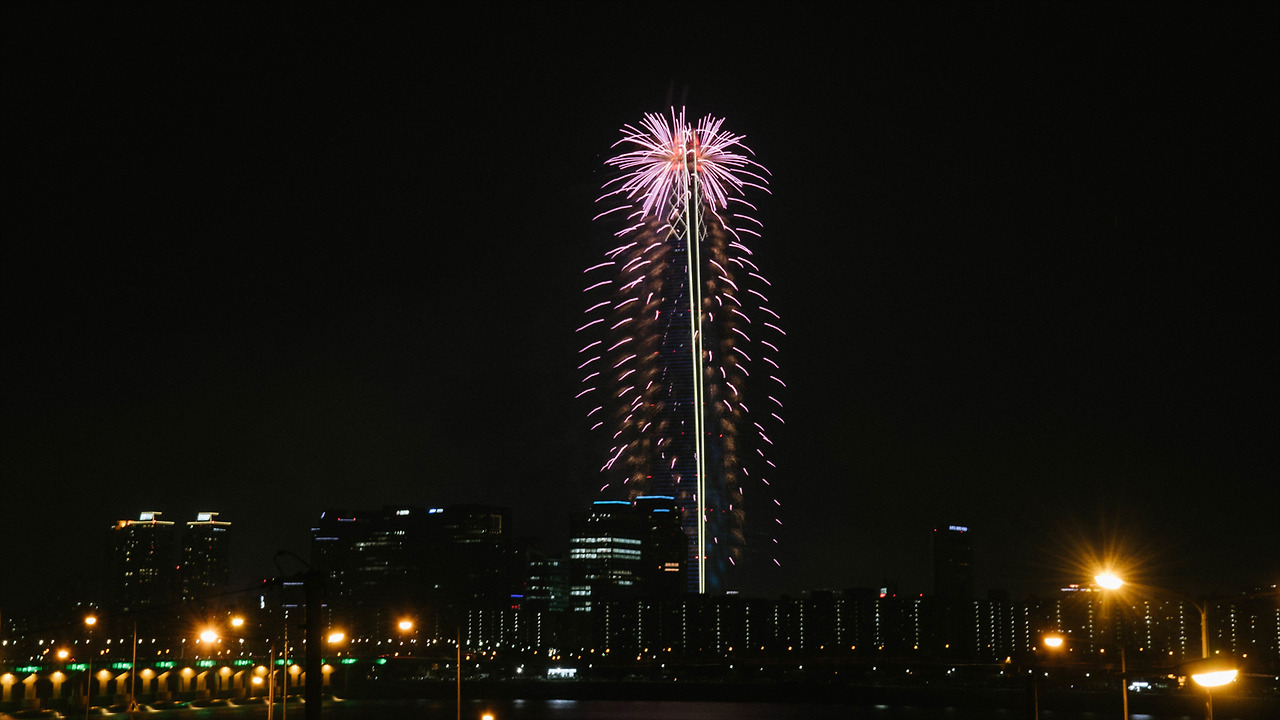 말이 많았던 롯데의 타워가 정식으로 오픈하는 순간. 롯데월드 타워 옆으로 터지는 불꽃이 그것을 마치 하나의 크리스마스트리처럼 보이게 했다. 그것의 의도가 무엇이었든, 집 베란다에 가족끼리 옹기종기 모여 즐거운 이벤트를 선사해줬던 롯데에게 감사한 마음.
