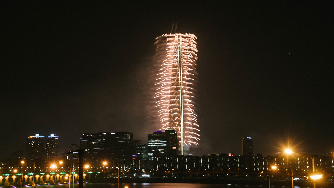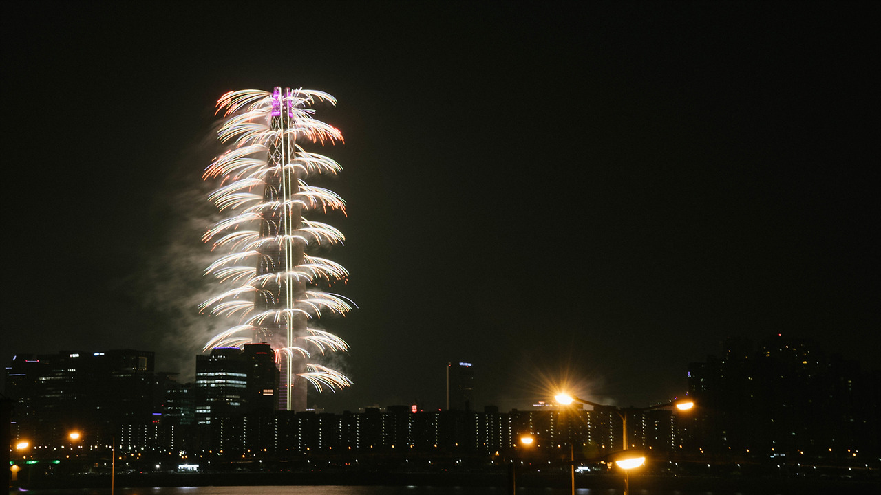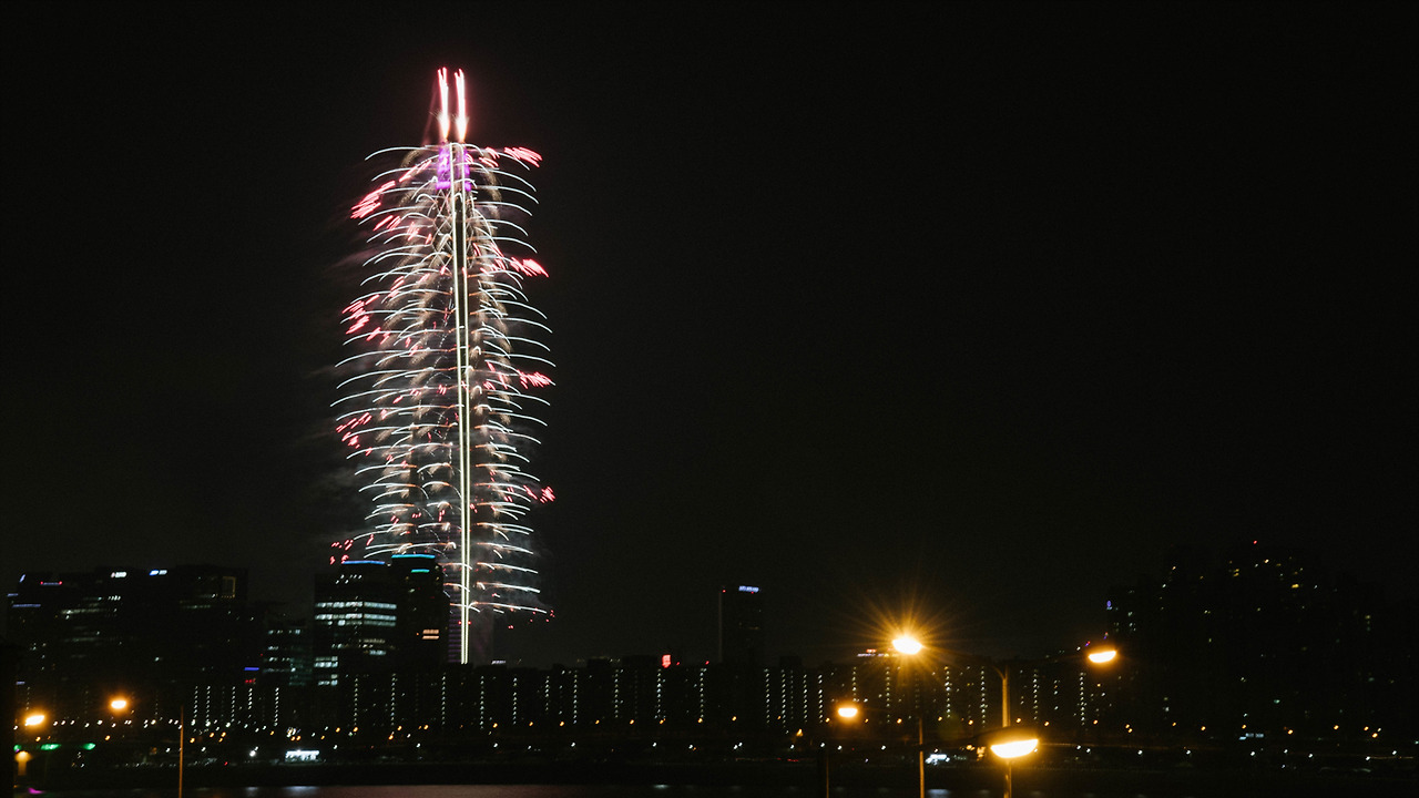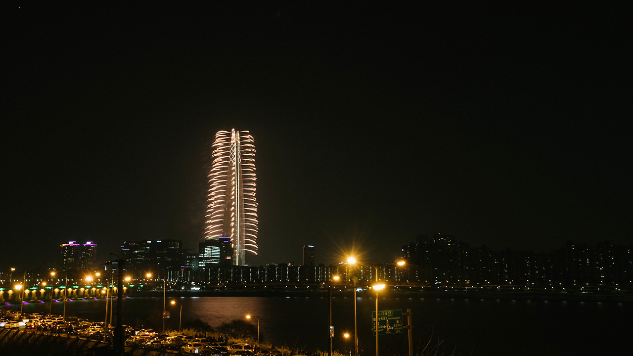 말이 많았던 롯데의 타워가 정식으로 오픈하는 순간. 롯데월드 타워 옆으로 터지는 불꽃이 그것을 마치 하나의 크리스마스트리처럼 보이게 했다. 그것의 의도가 무엇이었든, 집 베란다에 가족끼리 옹기종기 모여 즐거운 이벤트를 선사해줬던 롯데에게 감사한 마음.