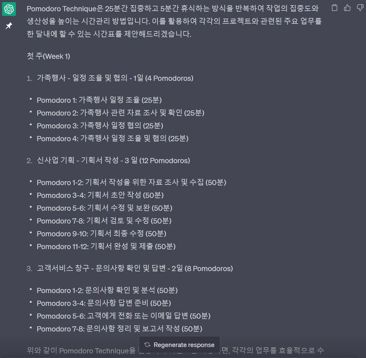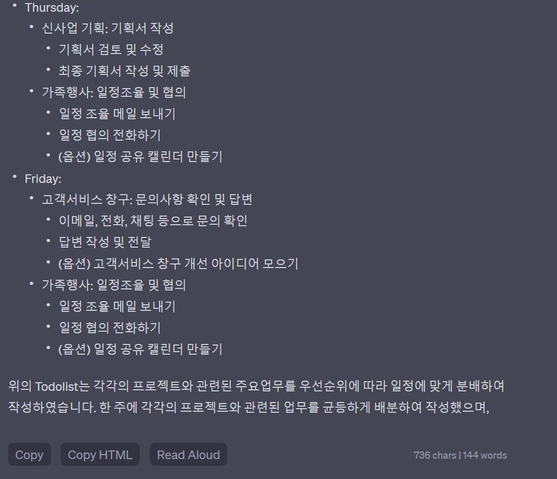 업무의 우선순위와 효과적인 시간관리를 위한 프롬프트 제안
