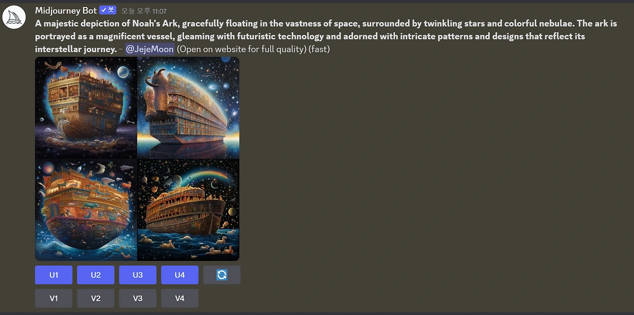 그리고, GPT가 만들어 준 프롬프트를 미드저니에 넣었어요.