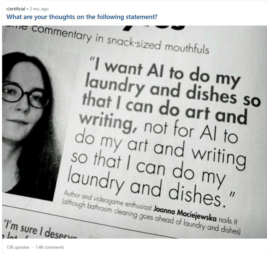 I want AI to do my laundry and dishes so that I can do art and writing,
