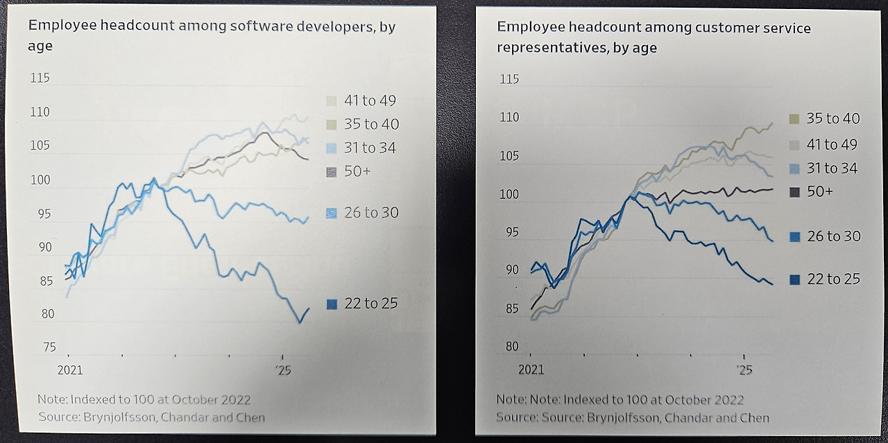 최근 데이터를 보면, 젊은 층(22~30세)의 고용이 줄어드는 반면, 중년층(35~49세)의 고용은 유지되거나 오히려 늘고 있는 추세다. 특히 IT 개발자나 고객 서비스 직군에서 이런 현상이 두드러진다.