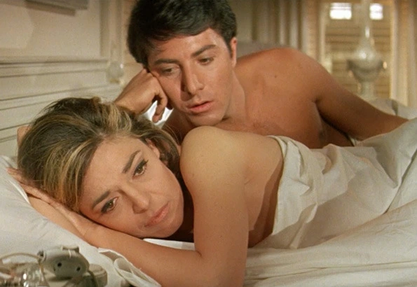 하지만 그 후로도 계속된 로빈슨 부인의 집요한 유혹 끝에 두 사람은 깊은 관계에 돌입하게 됩니다. 장래가 불투명한 벤자민은 낮에는 집 뜨락의 수영장에서 무료하게 첨벙거리며 지내다가 밤이 되면 호텔로 달려가 로빈슨 부인의 품 속에서 갈피를 잡을 수 없는 장래에 대한 불안감을 달랩니다.