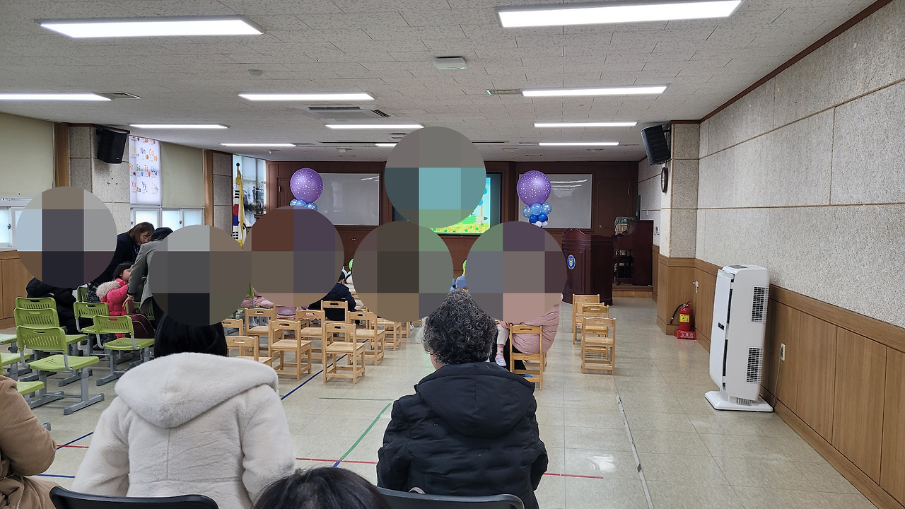 아이가 처음 유치원 입학식에 가서 혼자 자리에 앉는데 대견하다. 어떤 아이는 엄마 찾느라 마구 울어서 엄마가 결국 뒤에 계시다가 아이 옆에 쭈그리고 앉으시기도 한다.