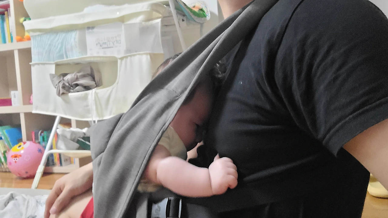 둘째를 안으며 진정을 시킬 때가 많다. 나는 슬링 아기띠에 익숙하지 않아서 이런 일들도 있었다.
