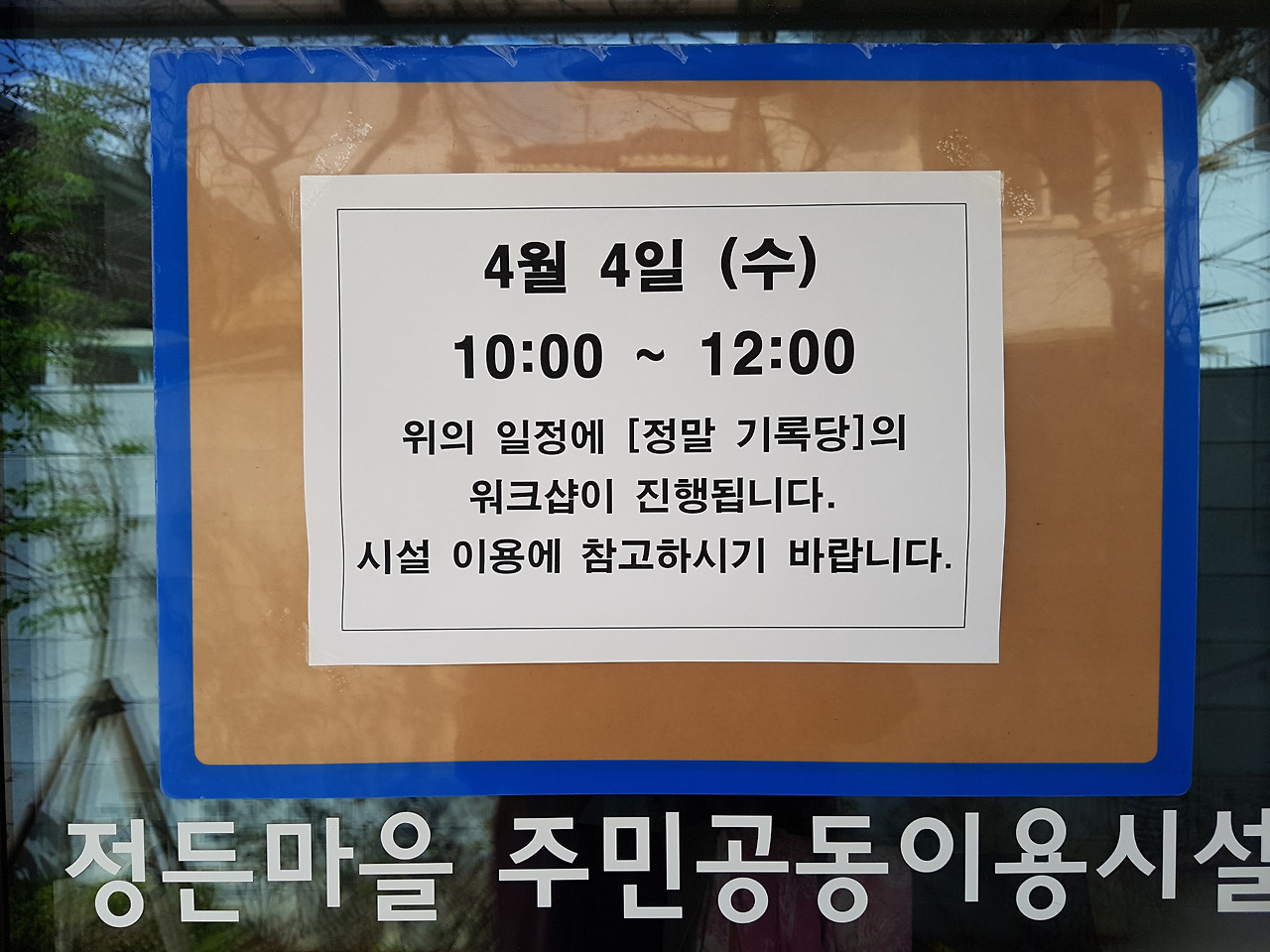 4월 4일, 정말기록당의 두번째 워크숍이 여린 정든마을 주민공동이용시설