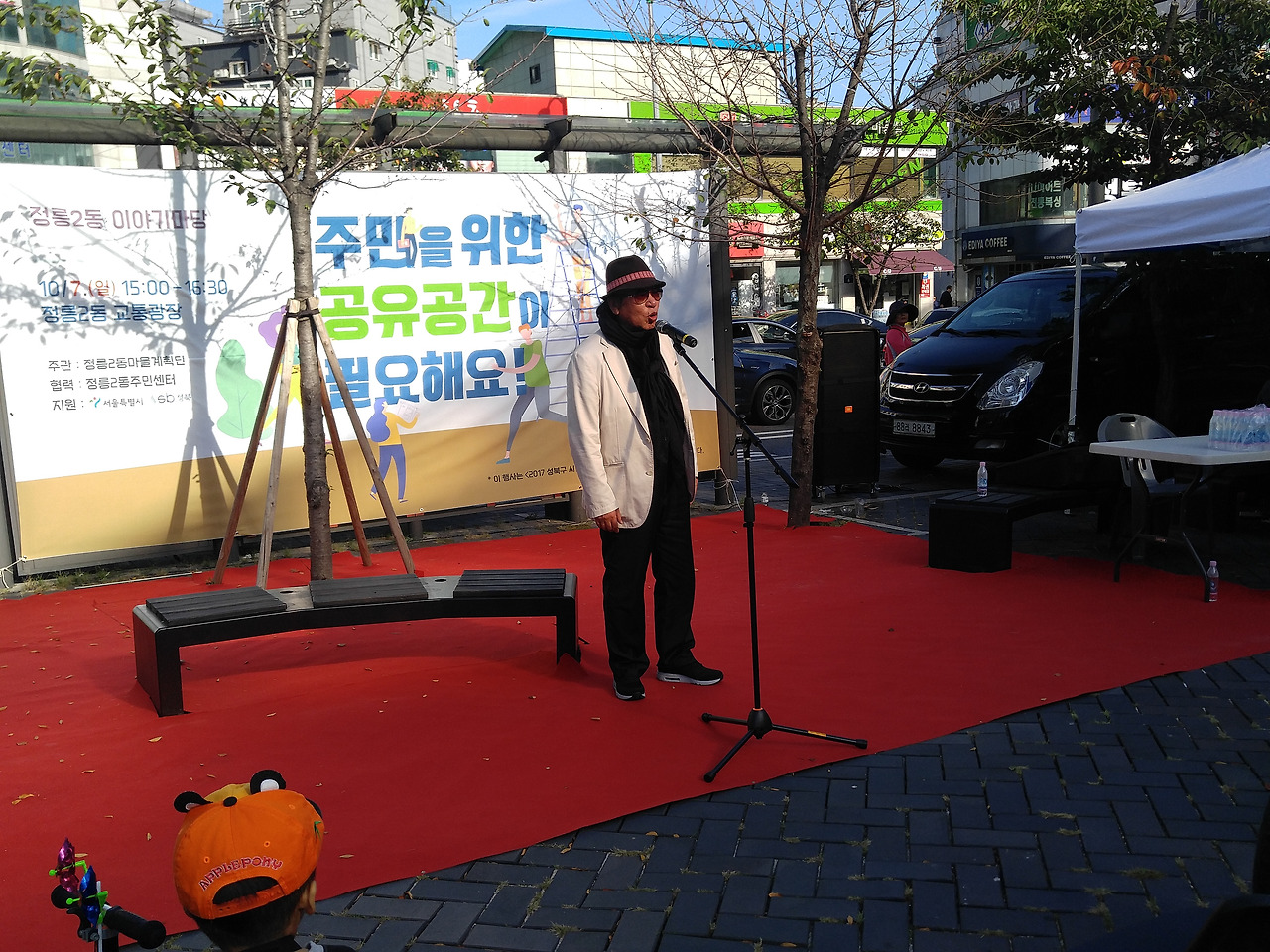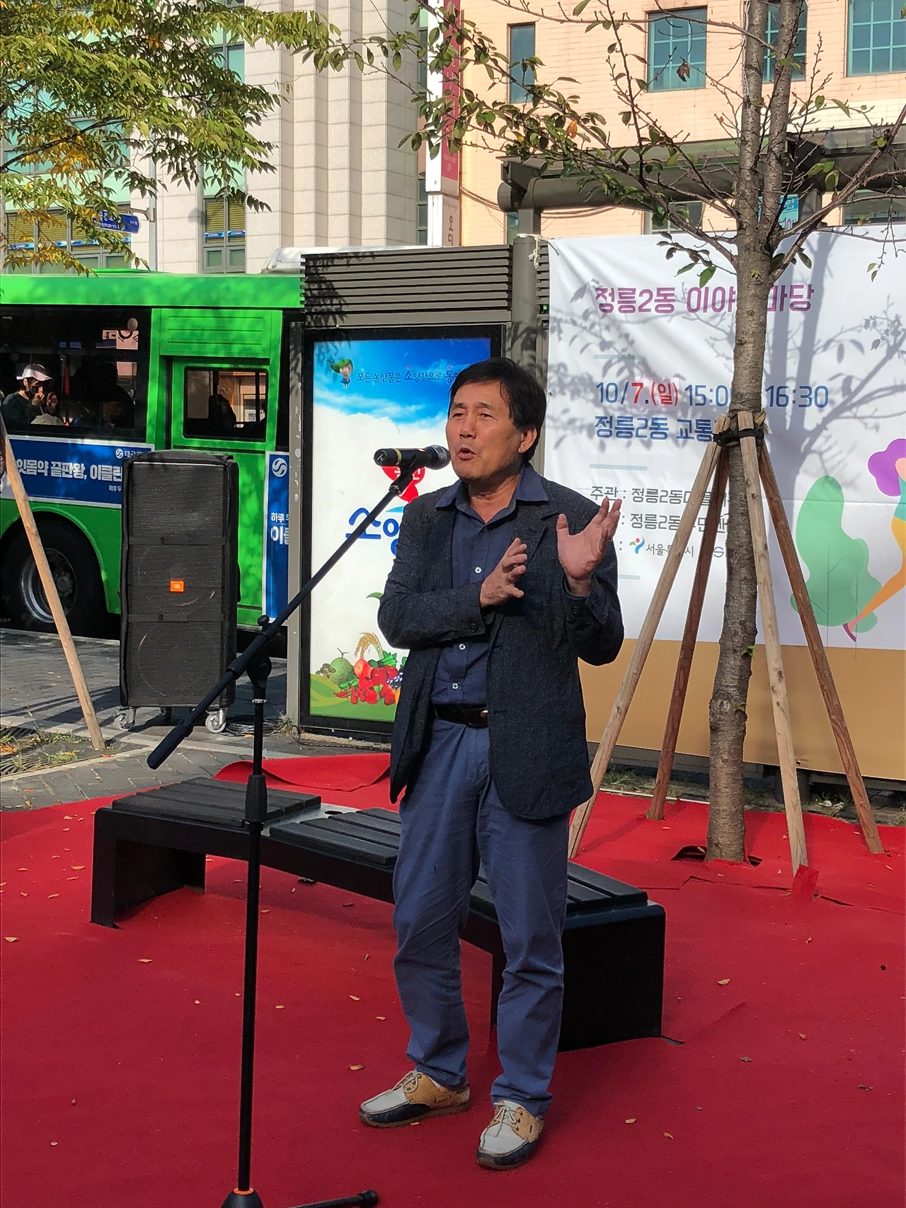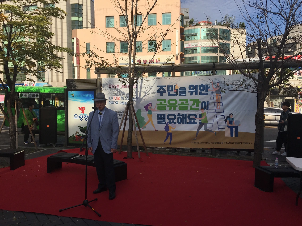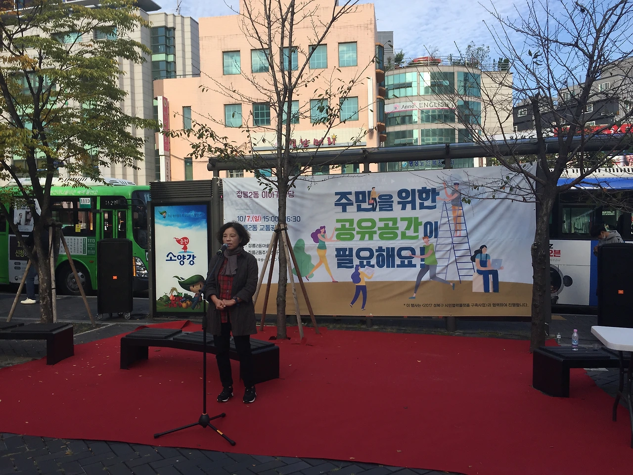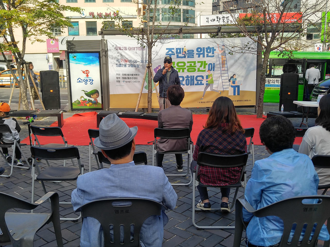 10월 7일 일요일 오후 3시, 정릉입구 교통광장에서 정릉2동 마을계획단이 주관하는 주민공론장이 열렸습니다. 정릉2동 어울더울 장터와 함께 진행된 이번 공론장의 주제는 ‘주민을 위한 공유공간이 필요해요’였는데요. 한정혜 정릉2동 마을계획단장의 오프닝에 이어 사회자 마이크를 받은 아트버스킹 김경서 대표는 정릉2동에 거주하는 주민 한 사람의 입장에서 함께 의견을 나눔과 동시에 행사의 진행을 맡아주었습니다. 주요 발언 내용을 정리해 보았습니다.