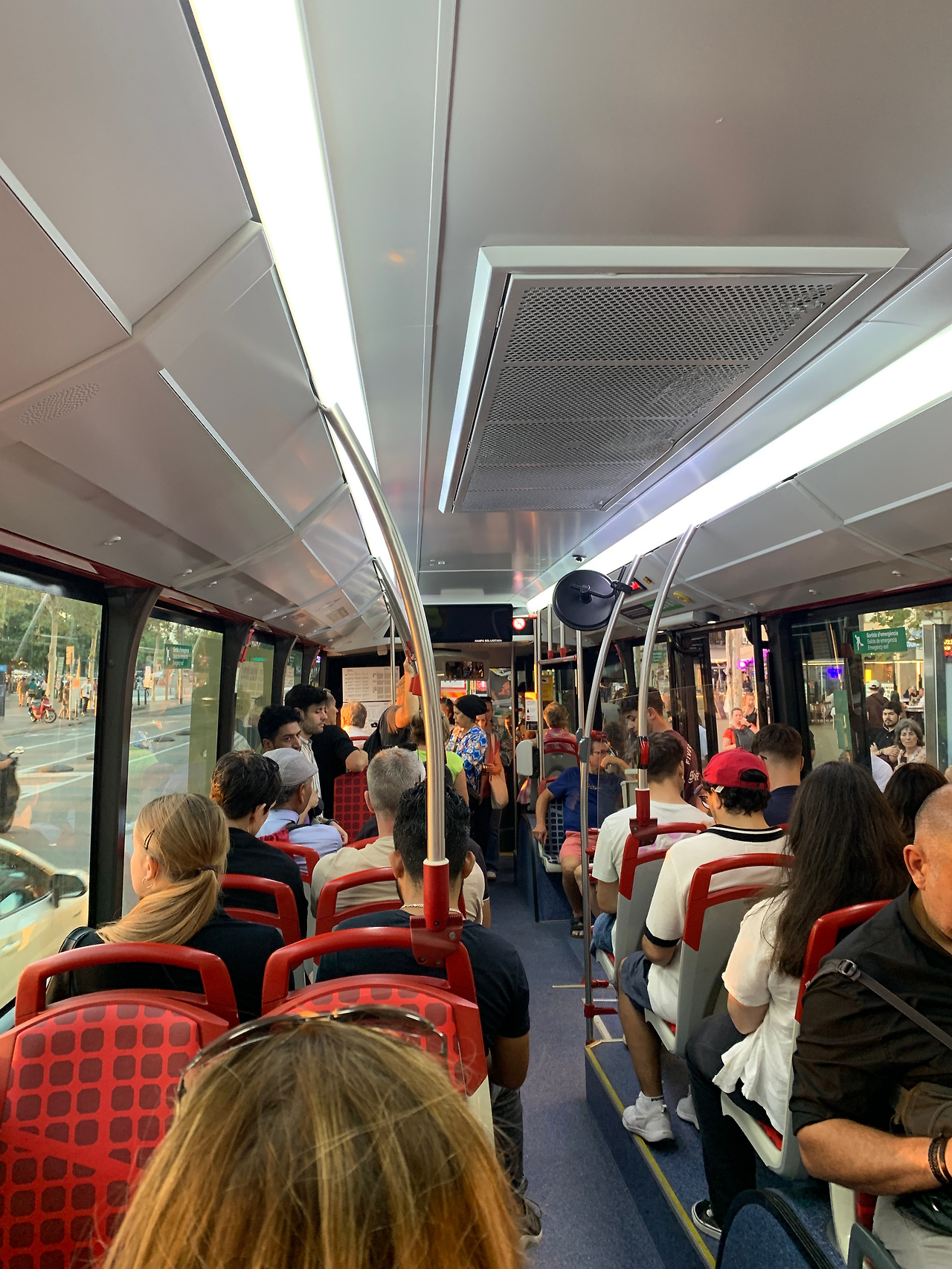 호텔로 가는 길, 카탈루냐 광장 안내소에서 교환한 교통권을 사용했다. 하필 우리가 버스를 탄 시간은 바르셀로나 사람들의 퇴근 시간. 바르셀로네타 해변을 지나 각 정류장마다 바르셀로나의 직장인들로 가득 찼다. 바르셀로나의 버스 역시 한국과 거의 비슷했다. 다른 거라곤 한국인인 우리 두 명. 낯섦 속 익숙함을 타고 호텔로 가는 길목에 있는 람블라스 거리와 라보케리아 시장 근처에서 내렸다.