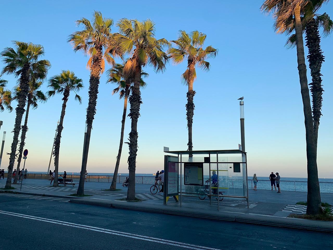 호텔로 돌아가야 할 시간, 바르셀로나에 왔으니 이곳의 버스를 타보기로 했다. 버스 정류장 앞 야자수들은 우리가 낯선 여행객임을 느끼게 해 주었다.