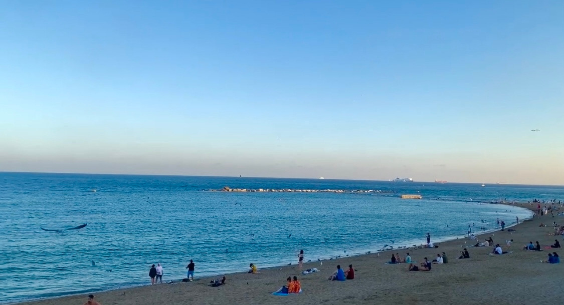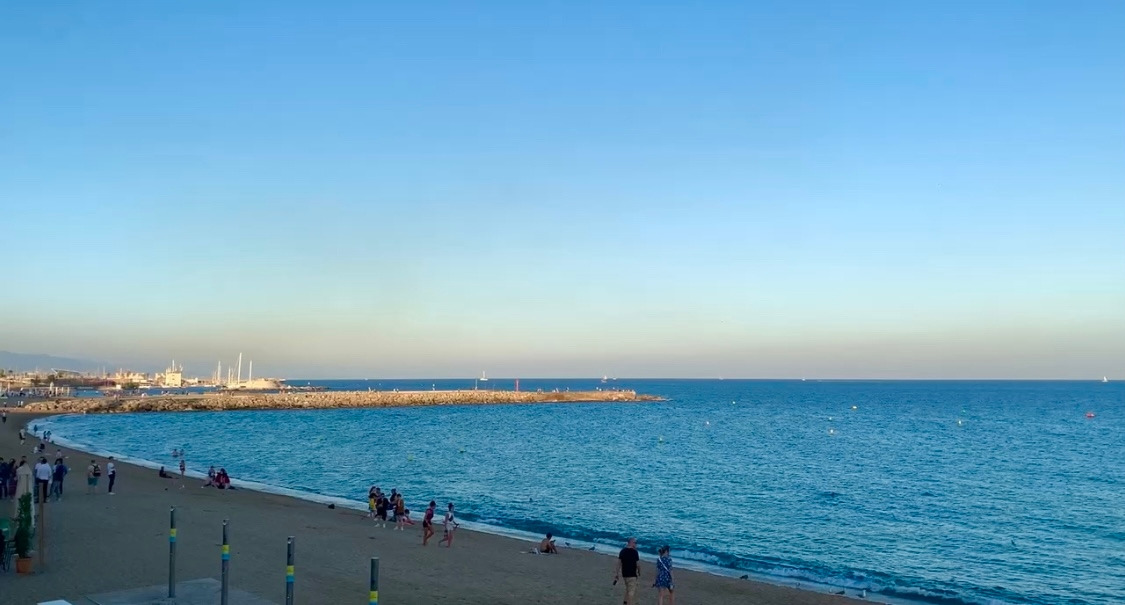 저 높은 곳에서 내리쬐는 햇살로 푸른 바다에는 윤슬이 생기고, 사람들은 넘실넘실 넘어오는 파도를 탄다. 작은 튜브에 몸을 맡기고 깔깔거리며 장난치는 아이들과 자유롭게 선탠을 하며 가을 바다를 만끽하는 어른들로 붐비는 이곳은 바르셀로네타 해변이다.