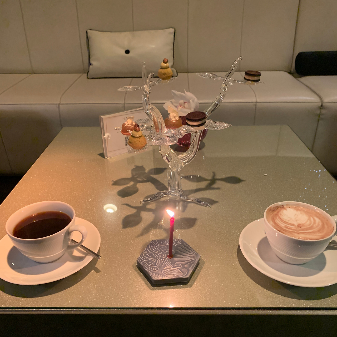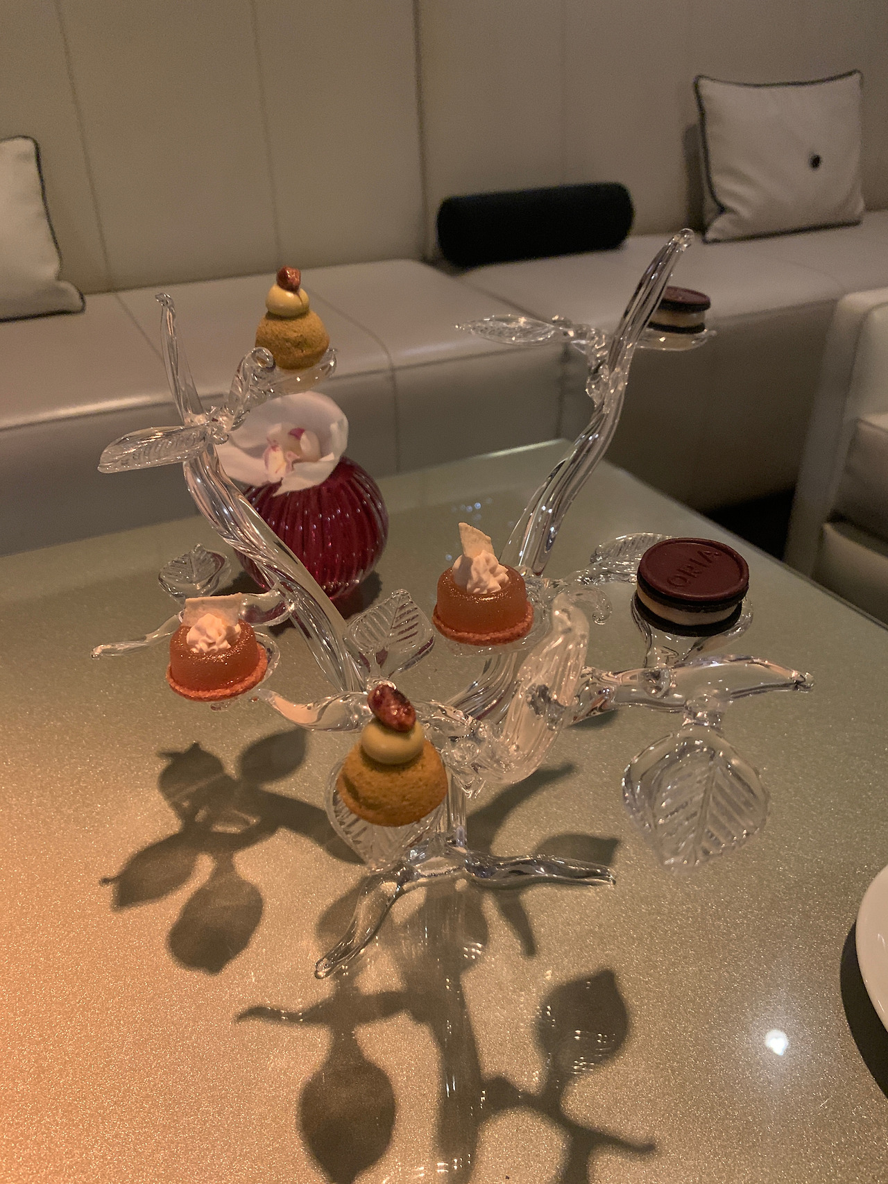 3시간 넘게 긴 코스를 즐기고 총괄 셰프님이 나와서 인사하고 간단한 대화를 나눴다. 디저트는 쇼파에서 편하게 즐기라며 자리를 옮겨주었다. 사랑하는 사람 덕분에 이런 호사도 누리고 결혼 참 좋구나.