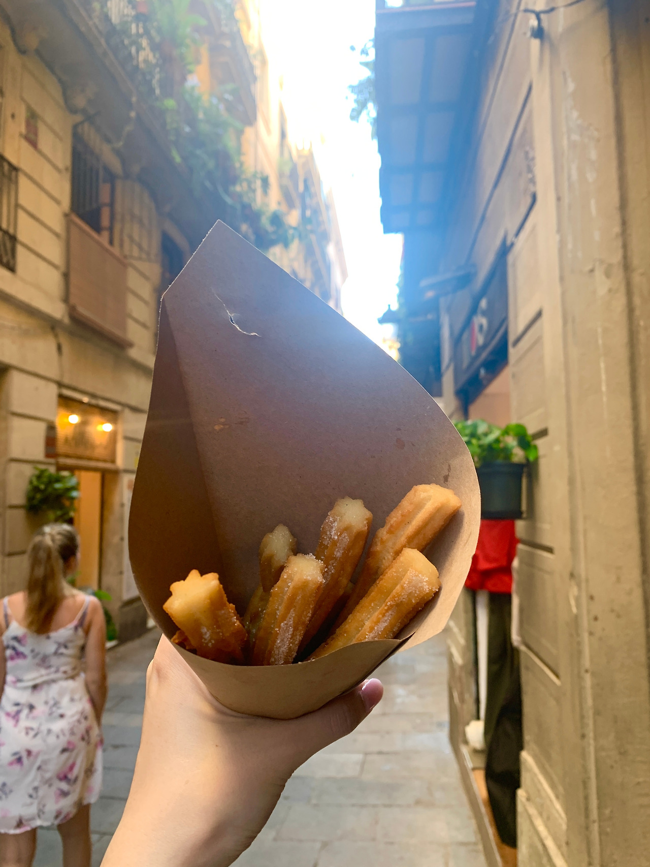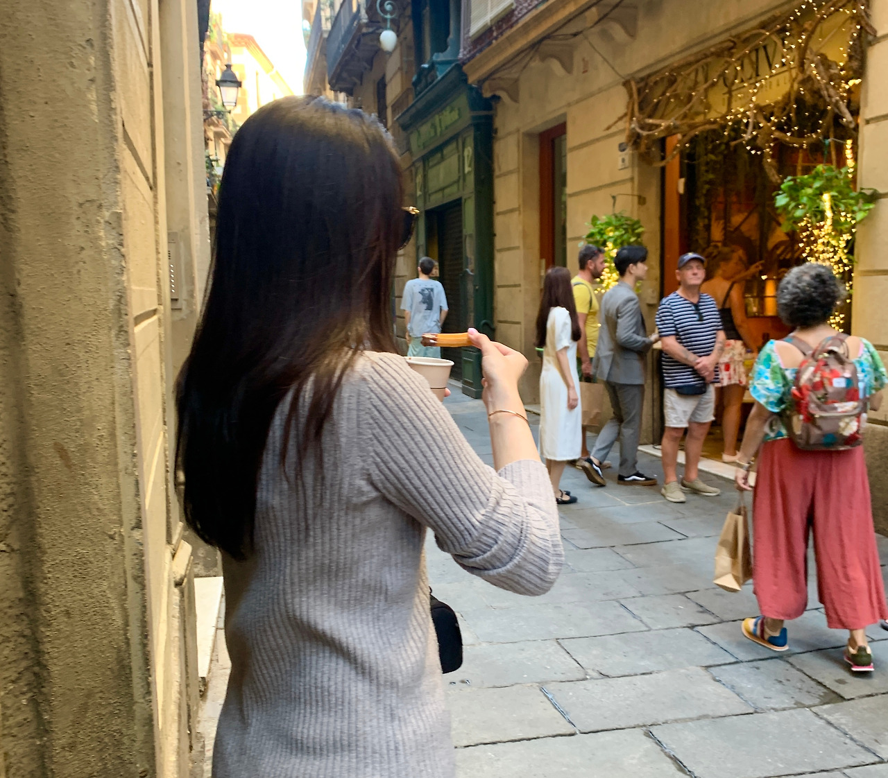 고딕지구에 올 때 기대했던 것이 있다. 바로 츄레리아 츄러스다. 이미 방송에도 나왔던 곳이라 가게 앞에는 주문하려는 사람들이 많았다. 우리는 기본 츄러스랑 찍어 먹는 핫초콜릿을 주문했다. 츄러스를 받아서 나오려는데 점원분이 "감사합니다~"라고 인사했다. 너무 놀라서 우리도 얼떨결에 "감사합니다!"하고 나왔다. 선글라스까지 끼고 있었는데 한국인인지 어떻게 안 걸까. 가뜩이나 유명한 곳인데 한국어까지 들으니 이 츄러스는 에버랜드 츄러스보다 백배는 더 맛있었다. 행복할 수밖에 없게 만드는 맛이었다.