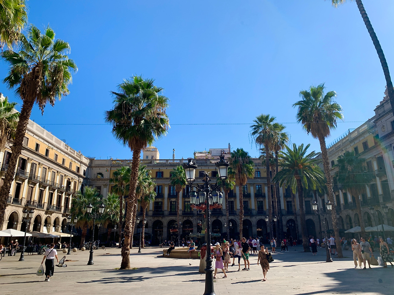고딕지구로 가는 길, 발걸음 닿는 대로 걷다 보니 레이알 광장이 나왔다. 레이알 광장은 가우디가 설계한 독특한 모양의 가로등을 볼 수 있는 곳이다. 사진 중앙의 가로등이 그 가로등이다. 사방에는 레스토랑과 바가 있고, 람블라스 거리 안쪽 골목으로 들어와야 하는 곳이다 보니 한적한 편이다. 여유로운 점심 식사를 즐기기에 딱인 곳 같다.