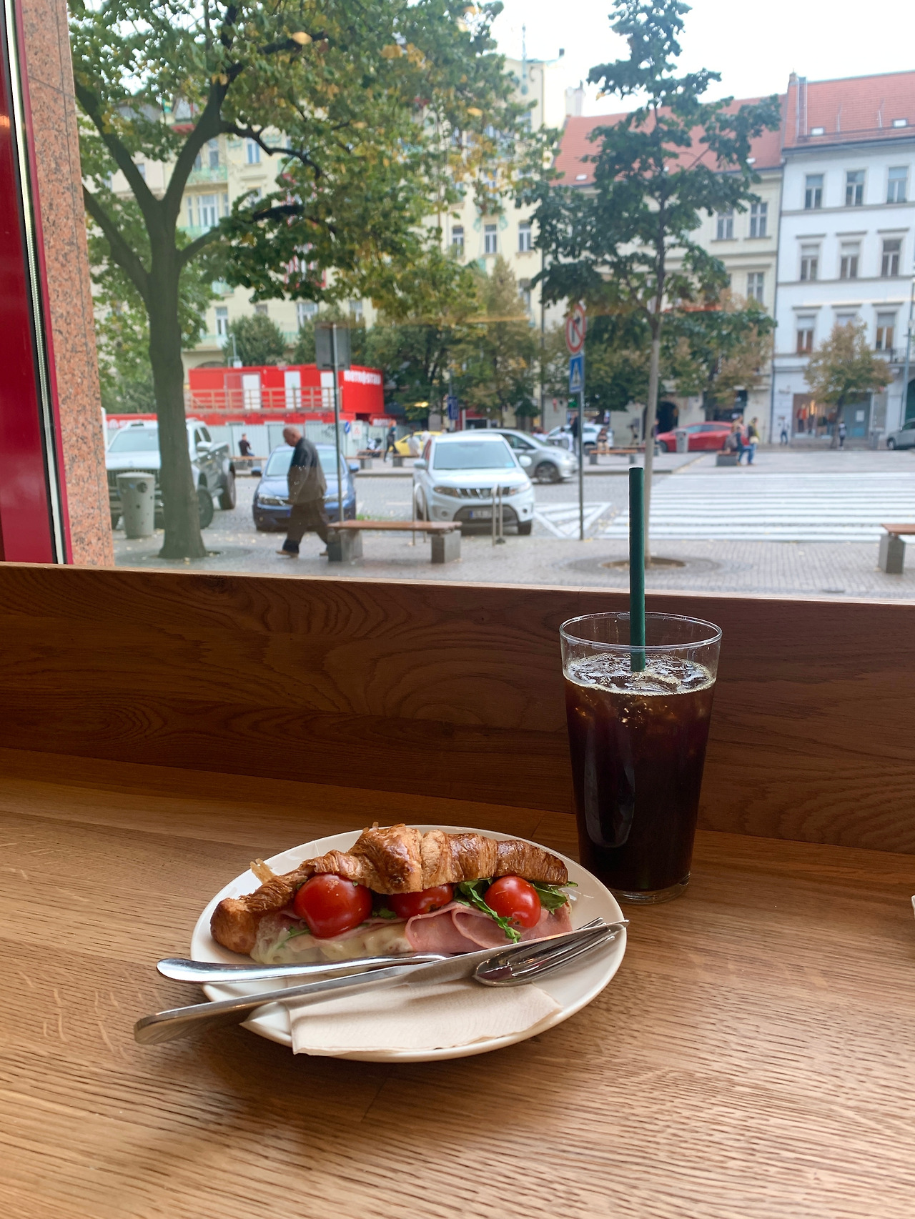 아직 아무도 도착하지 않은 바츨라프 광장. 출출했던 우리는 광장 앞 스타벅스에 들려 간단히 아침을 먹기로 했다. 유럽에서는 흔하지 않은 아이스 아메리카노를 한 모금 마시고, 크루아상 샌드위치를 베어 물었더니 잠깐 한국 같았던 기분. 프라하 투어는 어떨까 기대하며 맛있게 먹었다. 많이 걷고, 많이 경험할 투어라 마음도 단단히 먹었다. 배도 어느 정도 채웠고, 발 편한 운동화에 따뜻한 점퍼까지 입었으니 프라하 주간 투어 준비 끝. 가이드분과 함께 할 첫 목적지는 프라하성이다.