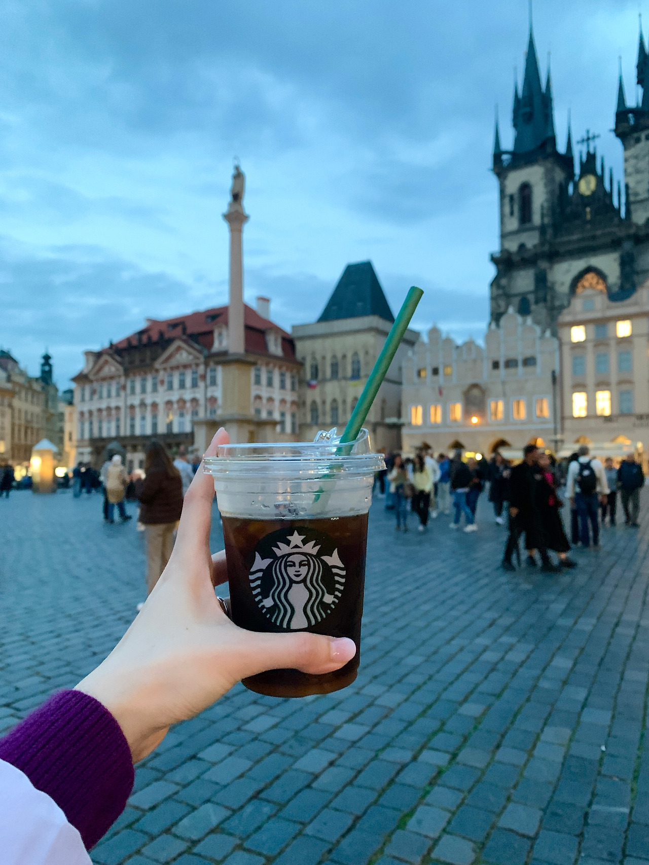 아니나 다를까 구시가지 광장에도 스타벅스가 있다. 유럽에서 귀한 아이스 아메리카노 한 잔으로 긴 투어로 메말랐던 목을 축였다. 놀라운 것은 한국인이 많이 찾는 관광지가 되어서인지 스타벅스 화장실에 한국어로 안내 문구가 적혀있었다. 한국어를 보고 나니 프라하에 대한 내적 친밀감이 더 높아졌고, 기분 좋게 프라하의 밤을 즐기러 나왔다.
