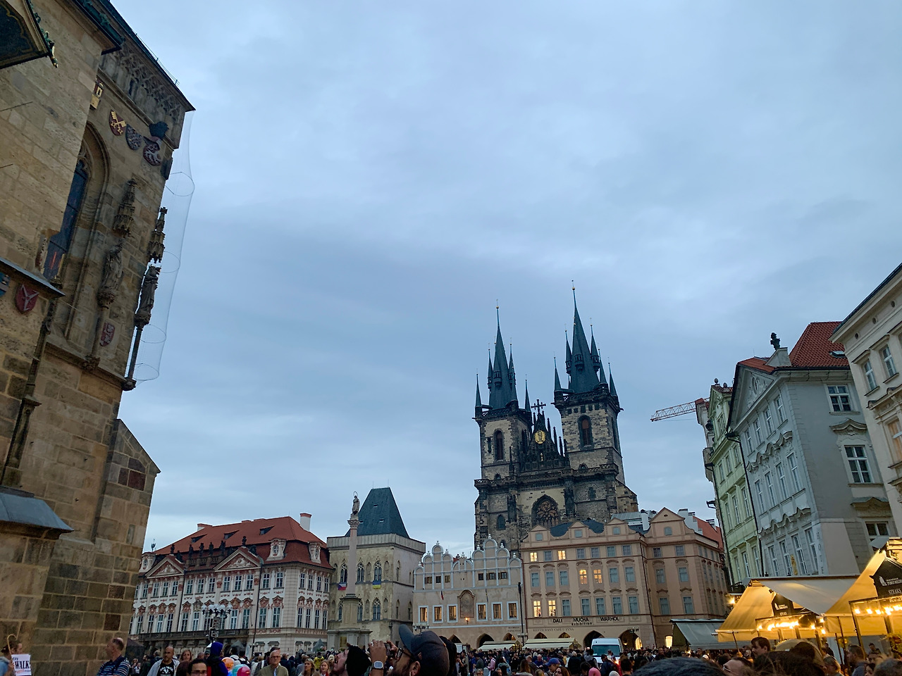 프라하에서는 모든 건축물이 역사 속 예술 작품이다. 천문시계탑에서 오른쪽으로 고개를 돌리면 구시가지 광장이 나온다. 이곳에는 중세시대부터 유행한 대부분의 건축 양식이 존재한다. 아르누보 양식의 정부 청사, 로코코 양식의 국립 미술관, 바로크 양식의 성 미쿨라셰 성당, 고딕 양식의 틴 성모 마리아 성당까지 각 시대를 대표하는 건축물이 즐비하다. 360도 돌며 이를 바라보니 화약탑에 이어 한 번 더 혼돈이 찾아왔다.