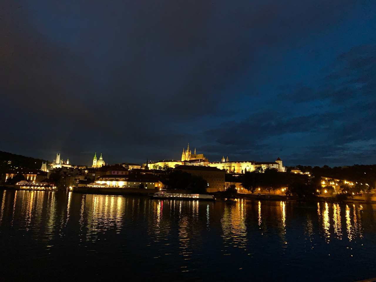 한강 야경, 남산 타워 야경을 봐도 그저 좋았는데 프라하의 야경이라니. 그것도 선선한 가을밤에 말이다. 설렘을 가득 채운 배가 움직이기 시작했다. 오른쪽으로 우리가 갔던 프라하성이 보였다. 이렇게 멀리서 봐도 한눈에 다 담기지 않을 정도로 크다. 내 눈으로 보고 있는 게 맞나 싶을 정도로 비현실적이다. 넘치도록 화려하고 아름다워서 영화 세트장 같기도 하고, 디즈니 애니메이션 속 세상 같기도 했다.