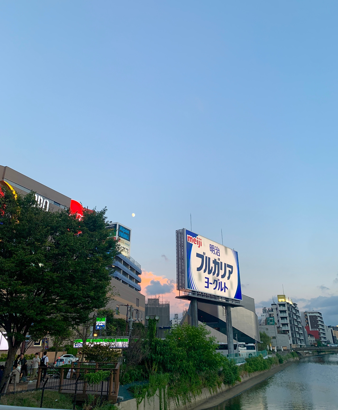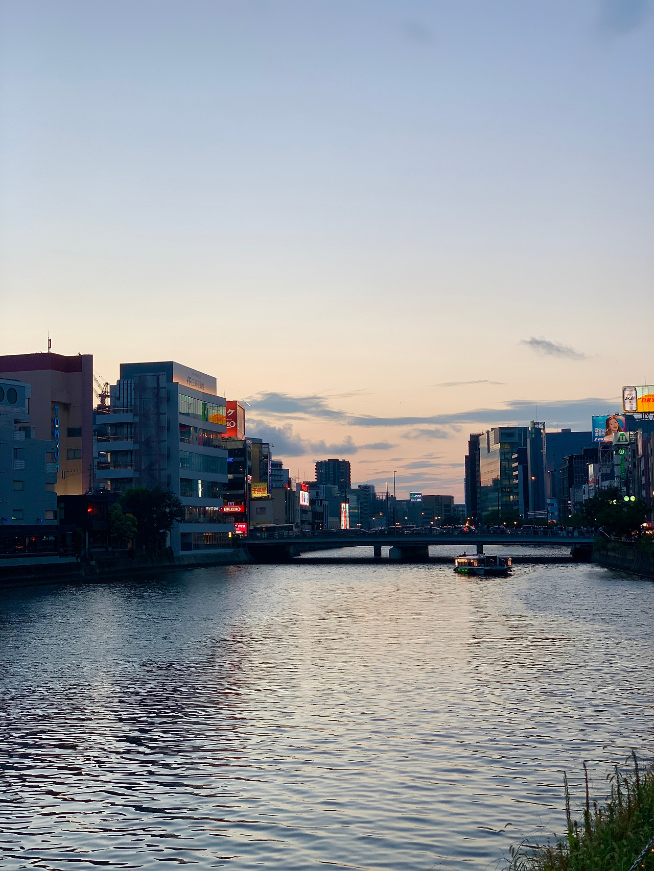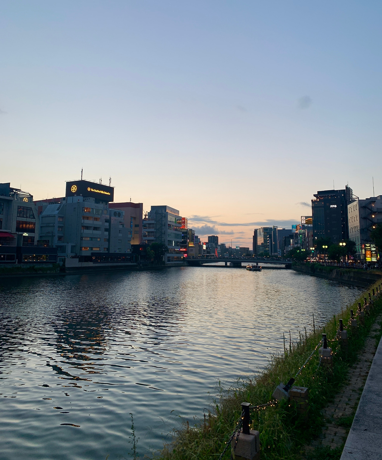 통통해진 배를 두들기며 산책을 하기로 했다. 해가 저무니 뜨거웠던 열기도 누그러졌다. 캐널시티를 돌아 뒤쪽으로 가면 그 유명한 나카스강 포장마차 거리가 나온다. 나카스 강변에 쭉 늘어선 포장마차들이 보인다. 꼬치, 라멘 등 다양한 음식들을 파는데, 어느 포장마차는 줄을 설 정도였다. 우리도 강을 바라보며 낭만 있게 꼬치 좀 먹어볼까 했지만 사람들로 가득해서 엄두가 나지 않았다. 쓱 구경만 하며 즐겼다. 나카스강에는 작은 배가 다녔다. 자세히 보니 음식을 파는 식당이자 배였다. 배 안에서 직접 회도 뜨고 음식을 조리하고 있었다. 다음 후쿠오카 여행 때는 꼭 예약해야겠다고 생각하며 발걸음을 돌렸다.