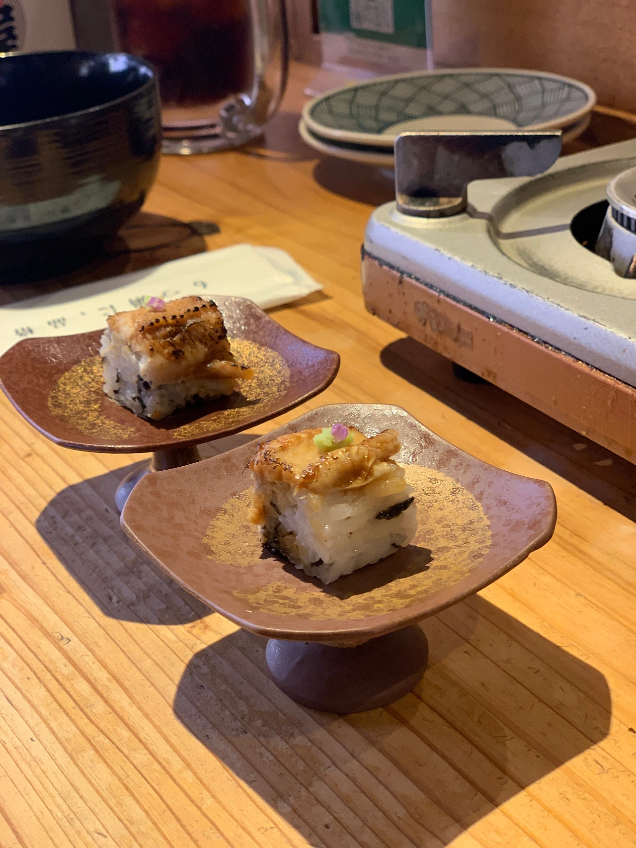 먼저 한 입에 쏙 넣을 크기의 장어 초밥이 서비스로 나왔다. 서비스치고는 정말 맛있었다. 메뉴에 없는지 찾고 싶을 정도였다. 생각보다 더더욱 맛집의 향기가 난다. 우리의 왼쪽에는 혼자 온 일본 분이 모츠나베에 맥주를 한 잔 하고 있고, 우리의 뒤쪽에는 일본 대학생으로 보이는 앳된 친구들이 왁자지껄 얘기를 나눴다. 일본 말이라 하나도 못 알아들었지만 괜히 우리까지 기분이 좋아졌다. 낯선 곳, 낯선 사람, 낯선 언어는 여행의 묘미 중 하나다.