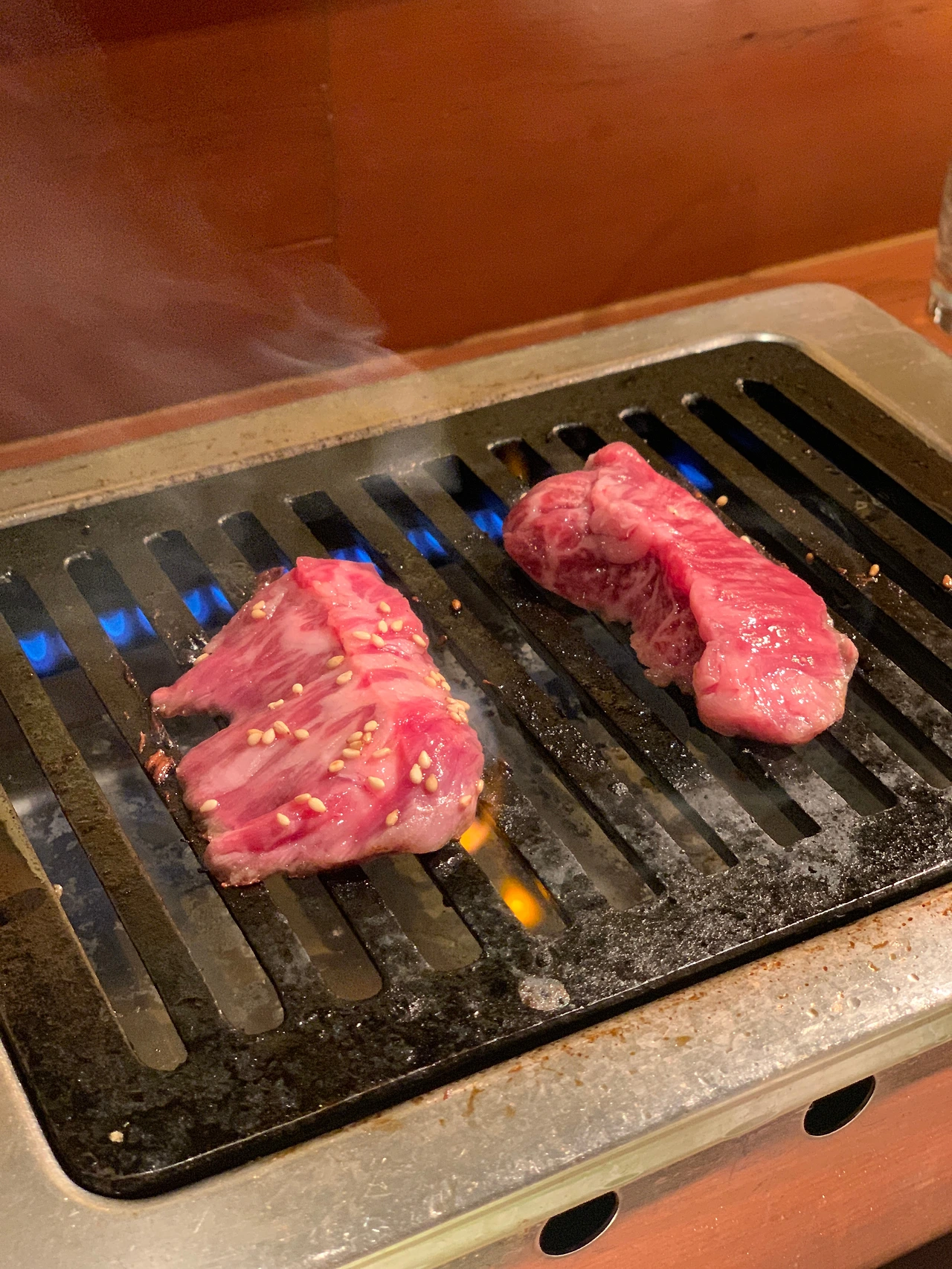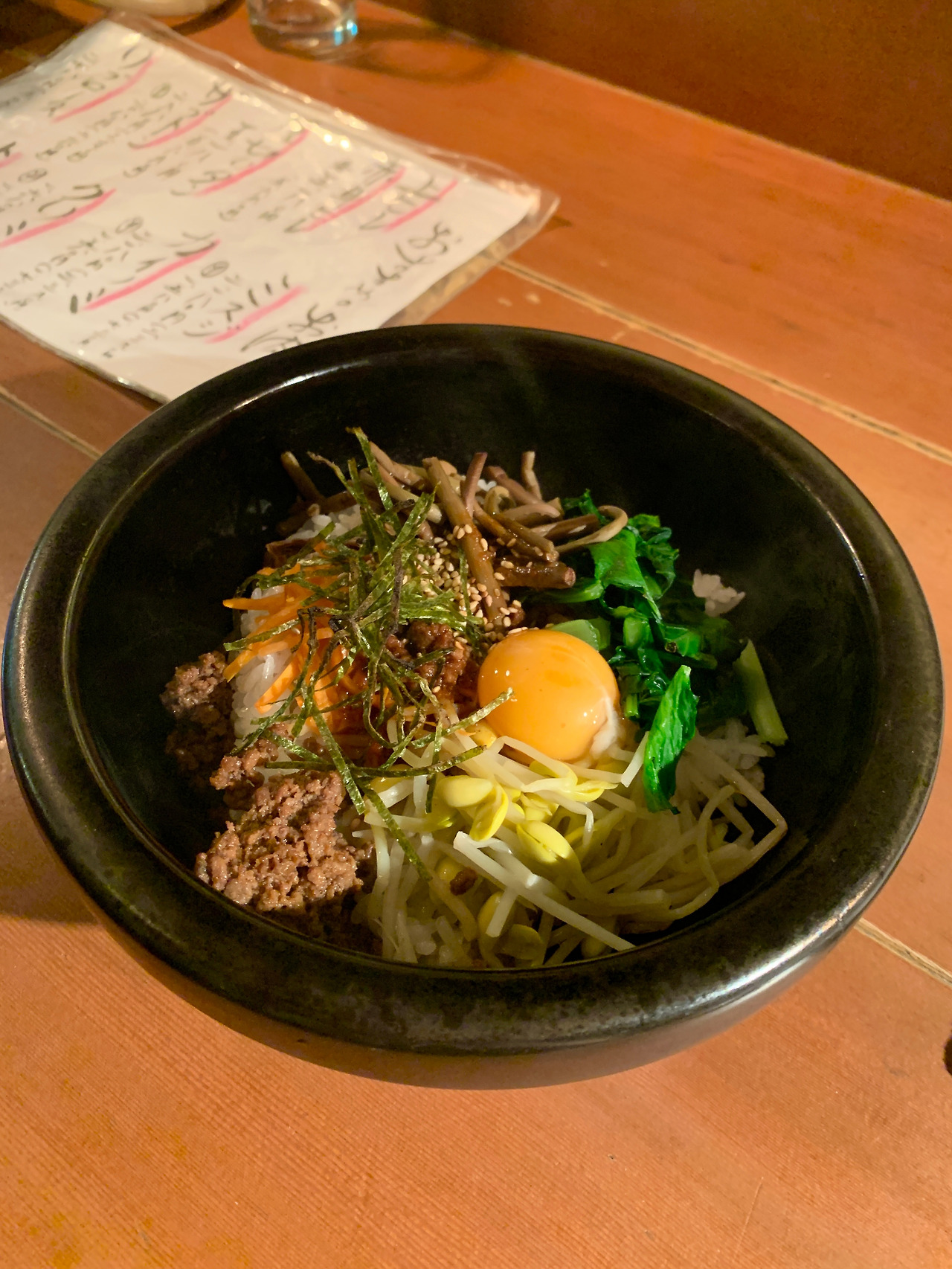 부위가 골고루 들어가고, 두 명이 먹기 좋은 양의 세트랑 돌솥비빔밥을 주문했다. '돌솥비빔밥이 왜 있지?' 궁금해서 찾아보니까 야키니쿠는 한국의 고기구이 문화가 일본에 전파된 음식이라고 한다. 이로 인해 우리나라의 음식인 돌솥비빔밥도 있는 걸까? 야키니쿠의 유래도 모르고 먹으러 간 내가 부끄러웠다.