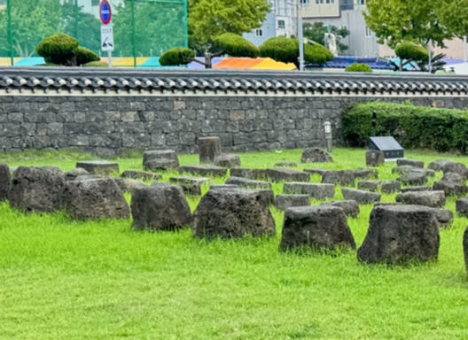 -할 일을 끝낸 주춧돌이 볕을 쬐며, 제주도 한 적한 곳에서 쉬고 있었습니다.