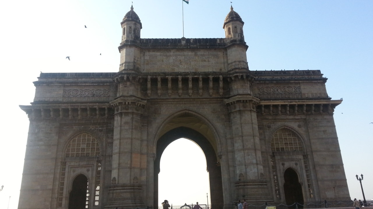 기차역의 유료 사워장에서 샤워를 하고, 택시를 타고 뭄바이의 상징 개선문