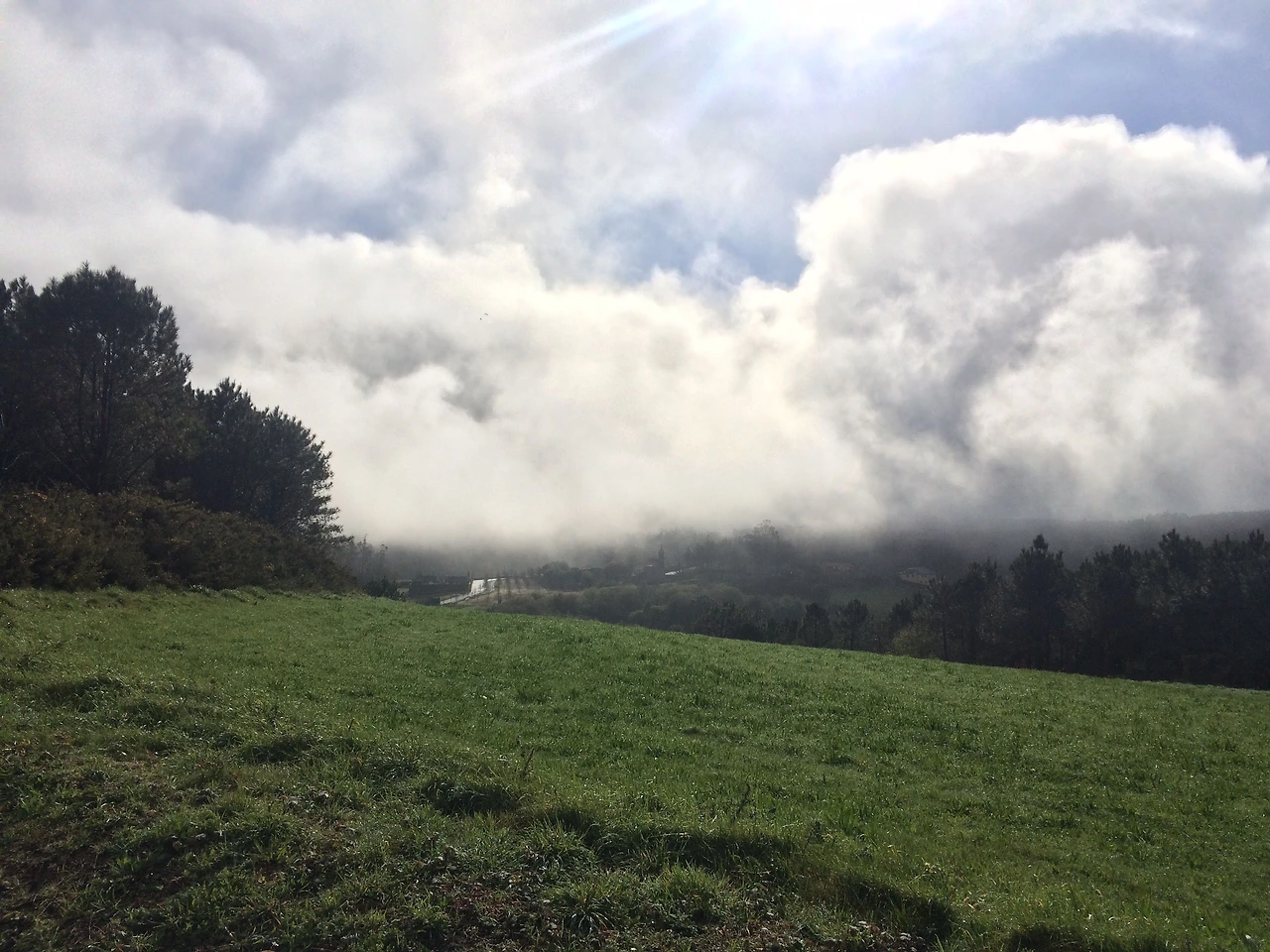 오늘의 길은 왠지 모를 익숙함이 있었다. 가파르진 않지만 오르막과 내리막이 자주 있는 모습에서 왠지 모르게 제주도의 오름이 떠올랐기 때문이다. 항상 오르막 위에는 안개가 껴있었고, 그 안개들이 물러가면서 스리슬쩍 아름다운 풍경을 내비치는 것 또한 제주도의 모습과 꽤 닮아 있었다. 나는 마치 제주도에 와 있는 것 같은 느낌을 받았다.
