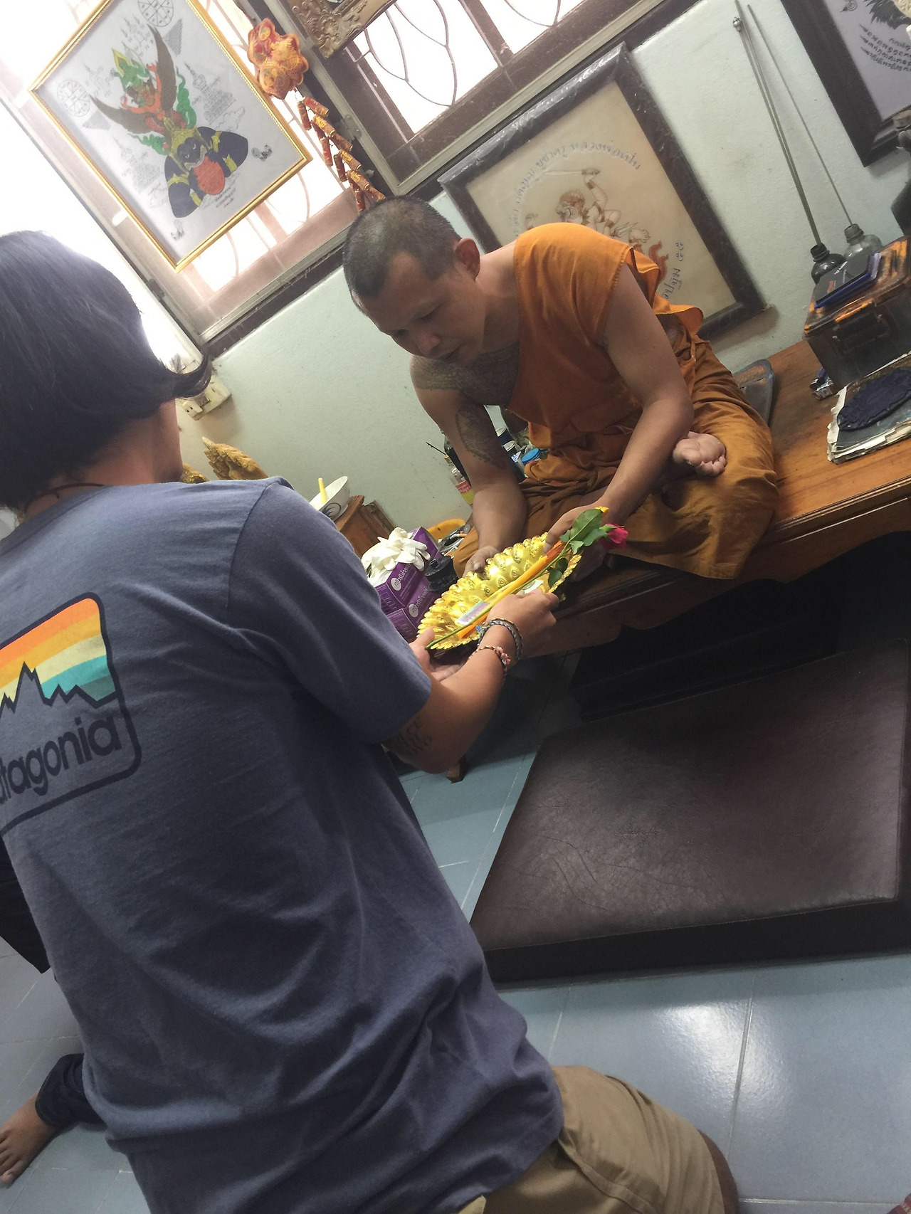 태국은 타투가 만연하다. 남녀노소 할 것 없이 많은 사람들이 하나씩은 가지고 있는 듯하다. 과거의 태국에서의 타투는 패션이 아니라, 부적과 같은 것이기 때문이다. 실제로 태국의 승려들도 타투가 꽤나 많으며, 우리가 절에서 부적을 받아오듯, 타투를 받아 오곤 한다. 이러한 타투는 안젤리나 졸리를 통해 더욱이 유명해졌다. 부적과 같기에 위치와 디자인을 정할 수 없는 타투. 본인의 팔자에 맞는 부적을, 그러니까 타투를 받는다고 생각하면 쉽겠다. 조금은 모험일 수도 있겠지만 세계여행을 계획하며 꼭 하고 싶은 일 중에 하나였다.