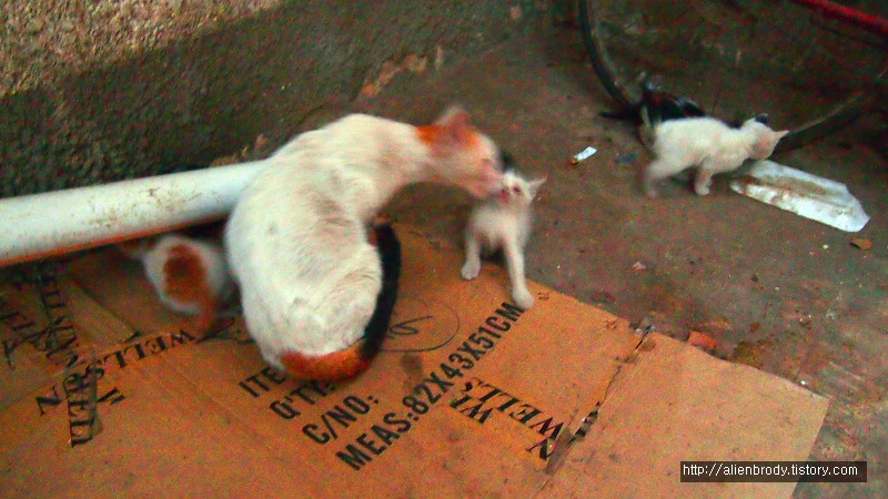 엄마가 오고 다들 신명을 되찾았다. 나는 졸지에 다시 길바닥에서 집사 신세로 전락하였다. 다들 신나게 노니는 모습 뒤로한 체 다시 길을 나선다. 부디 지난번 아기 냥이들처럼 쉽게 죽지 않았기를, 추운 겨울 잘 보내고 무럭무럭 자라났기를 바란다. 안녕.