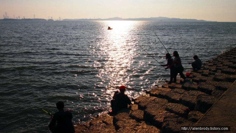 이곳에도 낚시꾼들이 꽤 많이 자리를 잡고 있었다. 희한하게도 중년 여성분들과 어린아이들이 눈에 띄었다. 근처에 낚시 가게들이 여럿 있는 것으로 보기는 했으나, 혹 그중에 여성분들이나 어린아이들을 대상으로 하는 곳이 있는가 하는 생각이 들 정도였다.