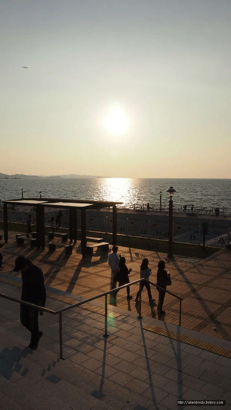 시화방조제에 들어서자 꽤나 차가 많이 막히기 시작하였다. 중간에 휴게소로 들어왔는데 꽤나 잘 꾸며진 공간이 구비되어 있었다. 전망대에 오르자 해가 넘는 모습이 한눈에 들어왔다. 한동안 석양을 물끄러미 바라보며 시간을 보냈다. 한참 고민이 많았던 시기, 고독이 한참 묻어나던 그때로부터 나는 과연 얼마나 자라났을지. 절대 어른이 되지 않겠노라 다짐하고 또 다짐하며 사는 내게 고독은 필연이라 믿고 있으나, 녹록지 않은 삶만큼이나 이런저런 허무한 다짐들은 가끔씩 넘는 해처럼 사라졌다 다시 떠오르곤 한다. 저땐 그래도 누군가가 함께 있기라도 하였구나. 해가 더디 수평선을 넘는다.