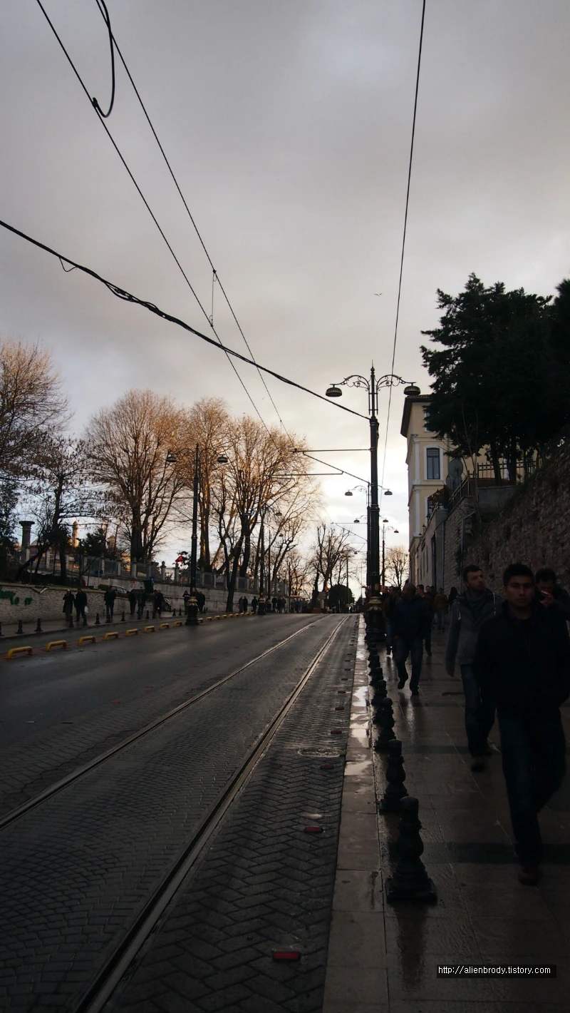 뒤를 돌아 걸어온 길을 본다. 귤하네 역에서 술탄아흐멧 역 방향으로 약 5분가량을 걸었다. 비가 조금은 덜 개인 오후의 이스탄불은 그 자체로도 충분히 아름다웠다. 어스름 해가 넘어가다 구름에 번져가는 풍경이 새롭다. 하늘이 가까이 있는 이곳이 비로소 아시아와 유럽의 접점, 이스탄불임을 실감한다.
