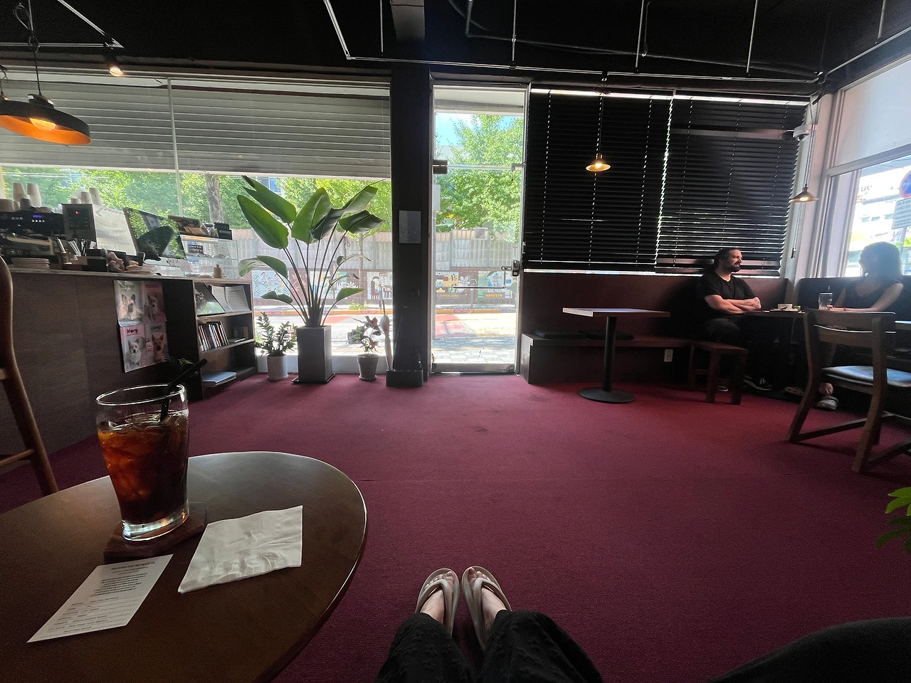 선선한 카페의 공기, 폭신한 소파, 상큼한 커피와 함께하는 독서시간. 미용실에서 쏟아졌던 졸음이 카페 안 공간으로 이동했다.