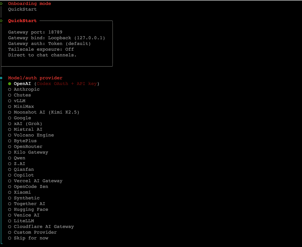 Quick Start를 선택하면 이제 어떤 LLM모델을 연결할지 나온다.