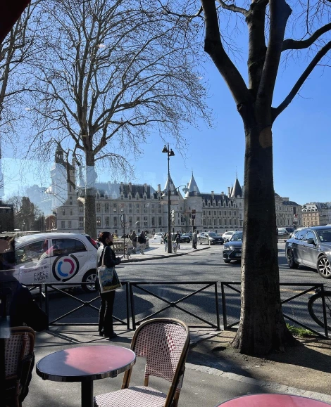 센 강가에 있는 이 카페, 브라스리는 맞은편 꽁시에르쥬가 있고, 먼 대각선으로 에펠탑이 보인다. 옆 건물은 벌써 몇 년째 공사 중인 떼아트르 들 라 빌(Théâtre de la Ville), 한 시절 우리가 정기권을 예약해 놓고 현대무용을 즐겨 관람하던 곳이기도 하다. 그때 언제나 미리 가서 조촐한 저녁으로 버터 바른 잠봉 샌드위치에 샨세르 산 백포도주 한잔을 마시고 공연장으로 향했었다. 그 낭만을 잃은 지도 꽤나 오래되었다. 아직도 공사는 진행 중이다.