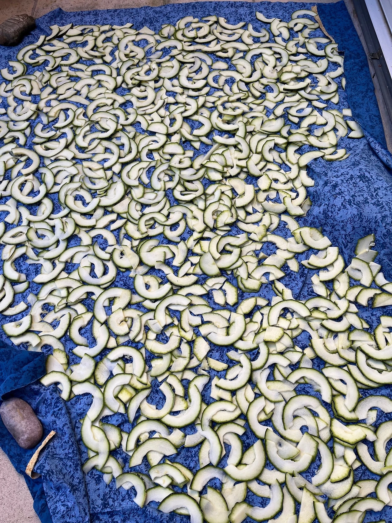 지난번, 20여 일 바캉스를 보내고 돌아왔더니 그동안 집을 비운 사이 텃밭의 호박과 오이가 징글맞게 자라나 호박인지 괴물인지 모를 정도였다. 그 가운데 좀 작은 것은 여기저기 나누어 주고, 부지런히 요리해서 먹기도, 그런데 큰 것들은 딱딱한 껍질이 야박하게 억세면서 속에는 큰 씨가 박혀있어 남 주기도 남우세스러워, 그렇다고 버리기에는 손가락이 펴지지가 않았다. 설령 지나치게 큰 탓에 흉측스러운 생김새일지라도 화학제품 한 방울 튕기지 않고 자연농법 무공해로 키운, 내 손길 닿은 작물이지 않은가? 그렇다면 어떻게 해야 할까? 좋은 방법이 없을까? 고민하다 가까운 이들에게 조언을 구하기도 했었다. 그토록 고심 끝에 내린 결론이 얕게 썰어서 통풍 잘 되는 그늘에 말려 보관했다가 다음 겨울에 꺼내 먹는 것이었다. 이 역시 올여름 불볕더위 덕분이다.
