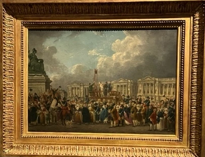 아래 사진은 프랑스의 왕 루이 16세가 1793년 1월 21일 콩코드 광장에서 처형되기 직전의 모습을 그린 것이다. 소품이지만 광장 중앙에 하늘높이 치솟은 처형대의 모습과 그 곁에 끌러 나온 루이 16세 왕의 모습이 새삼 적나라하다.