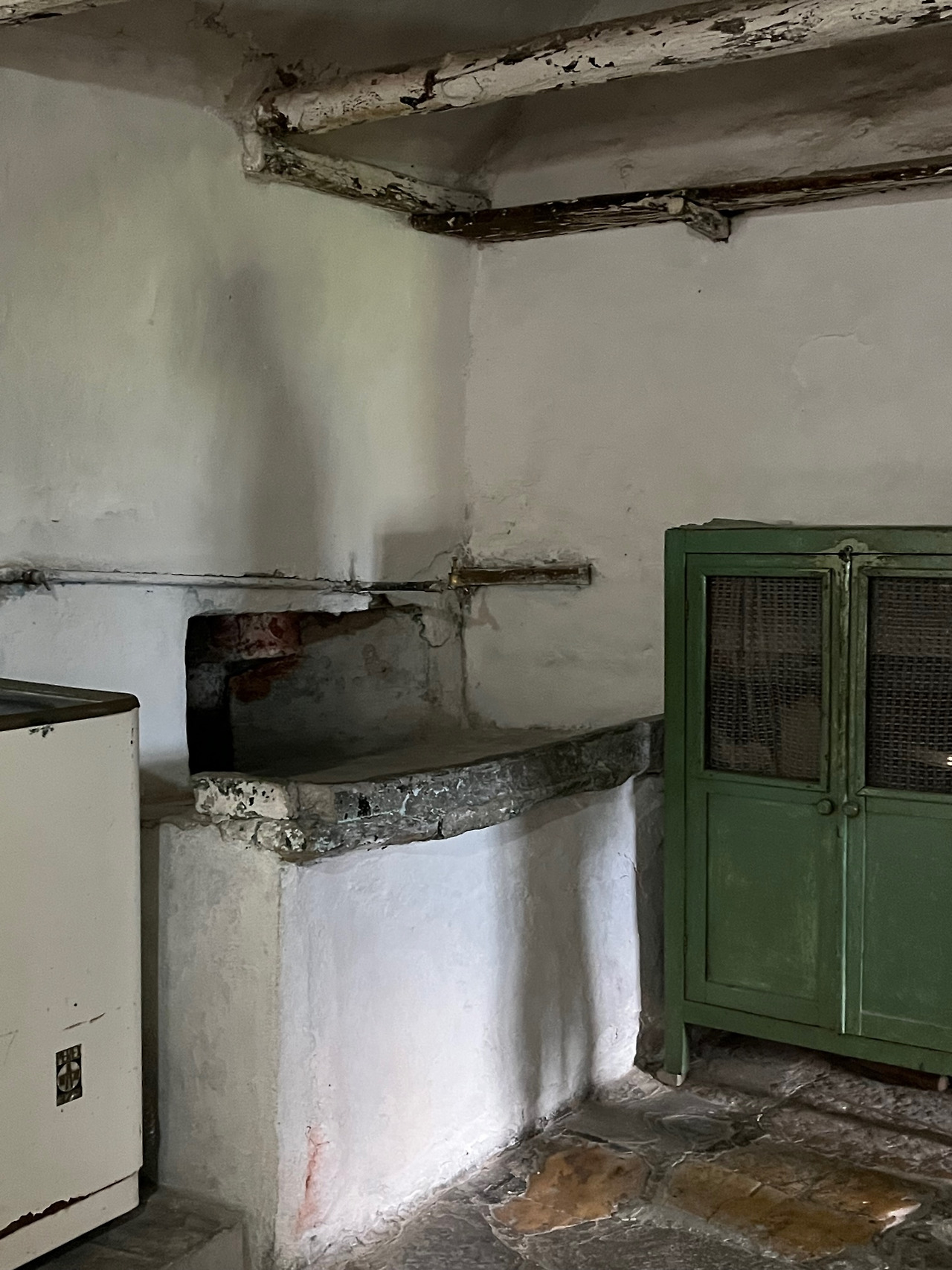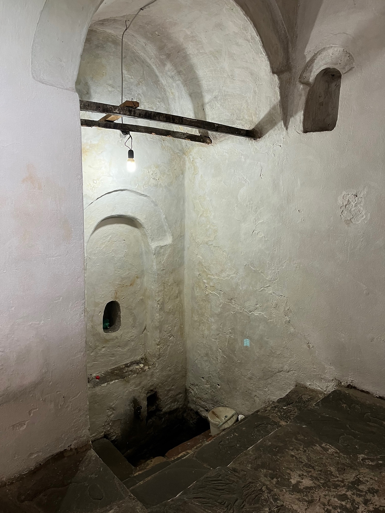 마지막날 아침 가방을 싸고 있는데 남편이 아래층에서 불러 내려갔다. 곁에는 주인아주머니도 계셨다. 그들은 내게 거실 벽 뒤편으로 어두컴컴해서 깊이를 알 수는 없는 거대한 우물을 보여 주었다. 굉장히 크고 넓어 차라리 물 저장소 같았다. 안은 어렴풋하나마 물도 반쯤 차있는 것이 보였다. 지금도 사용되는 물이란다. 이 우물은 전쟁처럼 큰 난리통에 집안에서 피난처로 숨어 지내기 위해 만들어진 것이었다. 이 집은 원래 옆에 있는 문화재의 노란색 집과 연결된 한집이란다. 그리고서 주인아주머니는 옆에 빼놓은 가구를 벽에 갖다 붙여 우물의 입구를 막으신다. 그리고 다시 뺏다가를 반복하면서 그 용도와 설명을 직접 보여주신다. 가구를 벽틈에 갖다 올리자 우물은 감쪽같이 사라지고 아담한 거실만 있다. 그동안 아무 일도 없던 것처럼 일상으로 되돌아왔다. 우리는 잠시 인간이 삶을 지켜내는 능력과 지혜를 엿보았던 것이다. 우리가 이처럼 흥미를 표하자 매우 흡족하고 뿌듯한 주인아주머니는 이 집의 내력에 대한 깊은 긍지를 느낀다. 이러한 설명과 소통 역시 번역기 앱을 통했다.